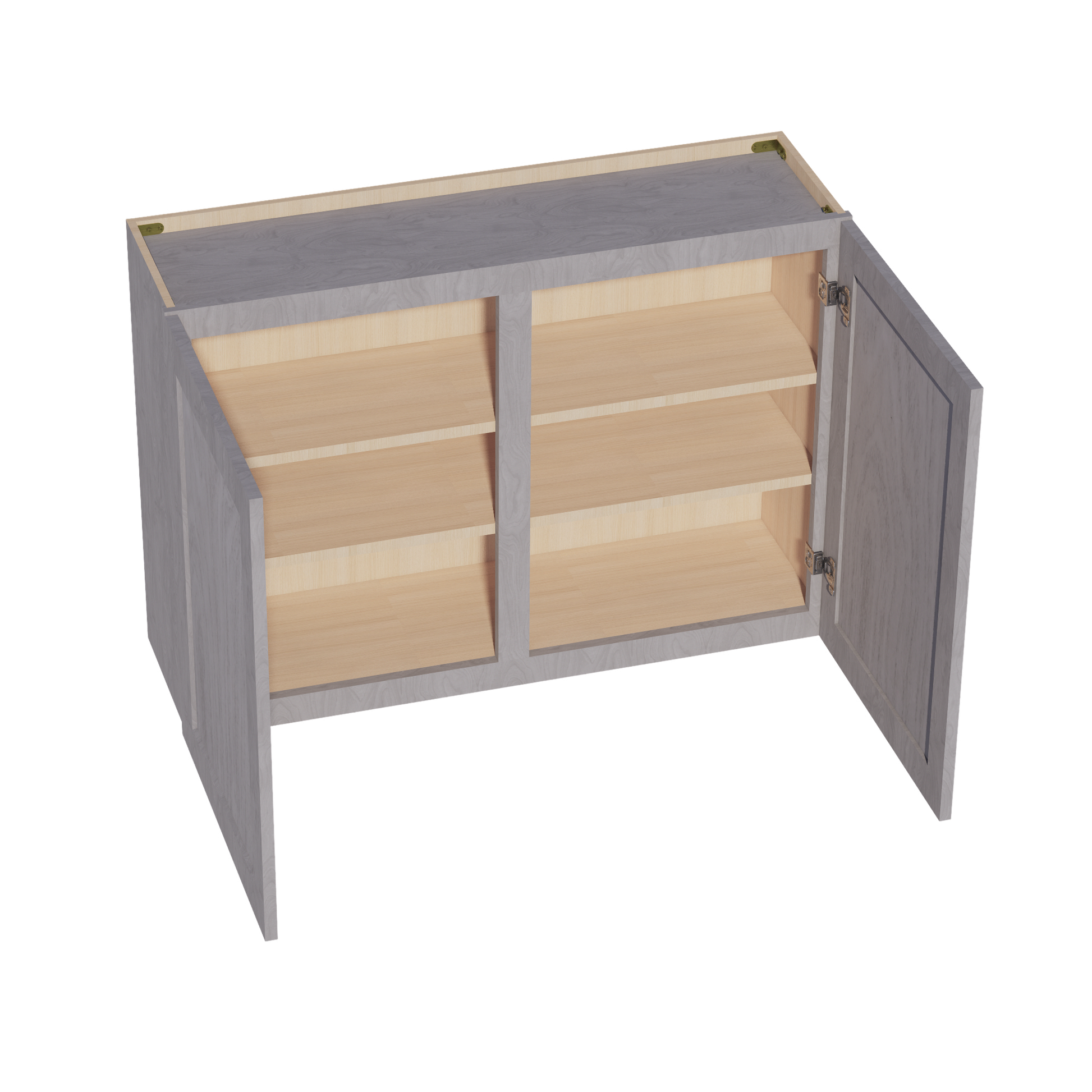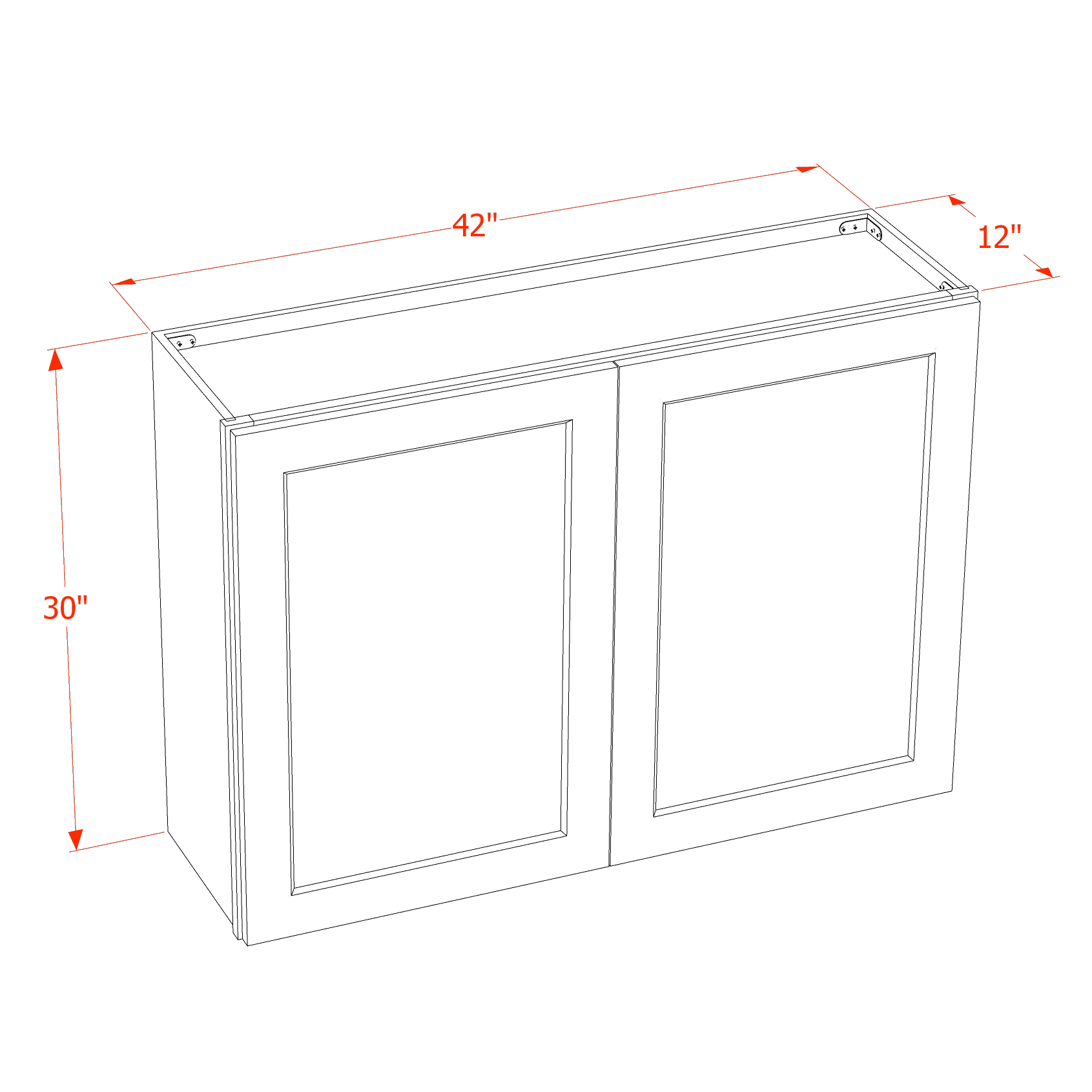 HLG-W4230: Light Gray Shaker 42"W x 30"H 2 Doors & 2 Shelves Standard Wall Cabinet