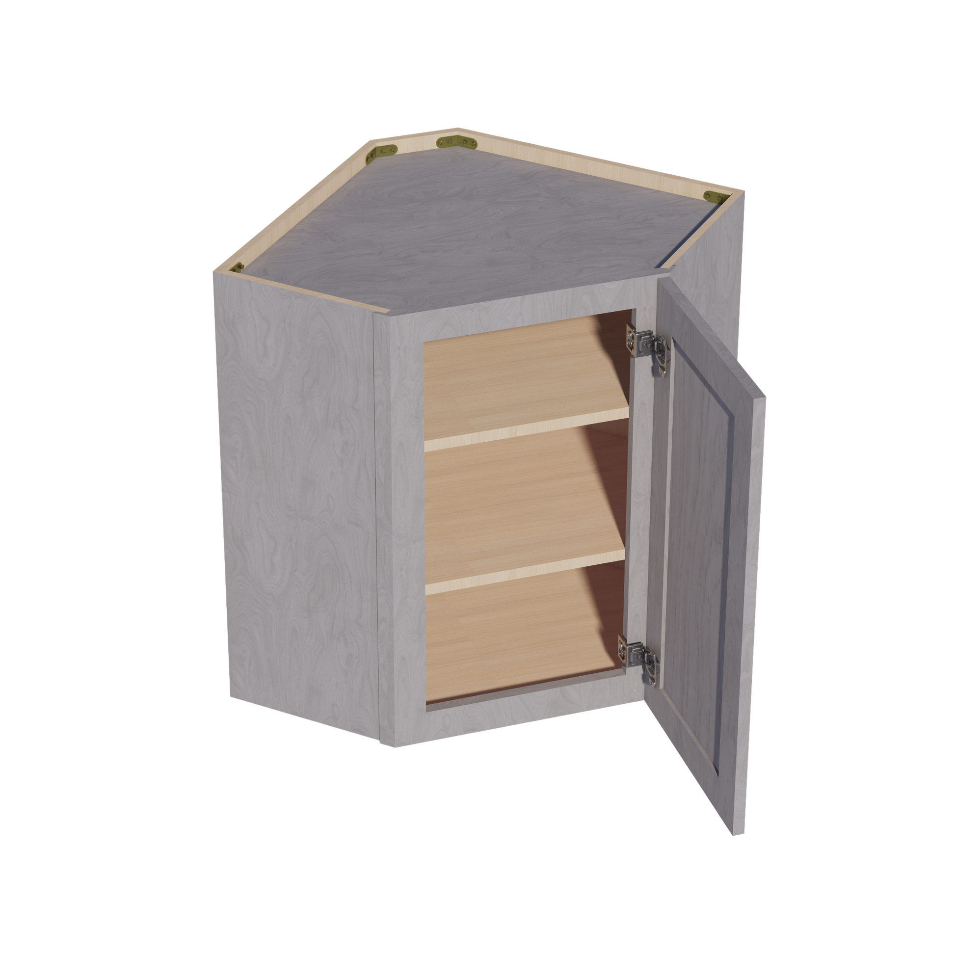HLG-WDC2430: Light Gray Shaker 24"W x 30"H 1 Door & 2 Shelves Diagonal Wall Corner Cabinet
