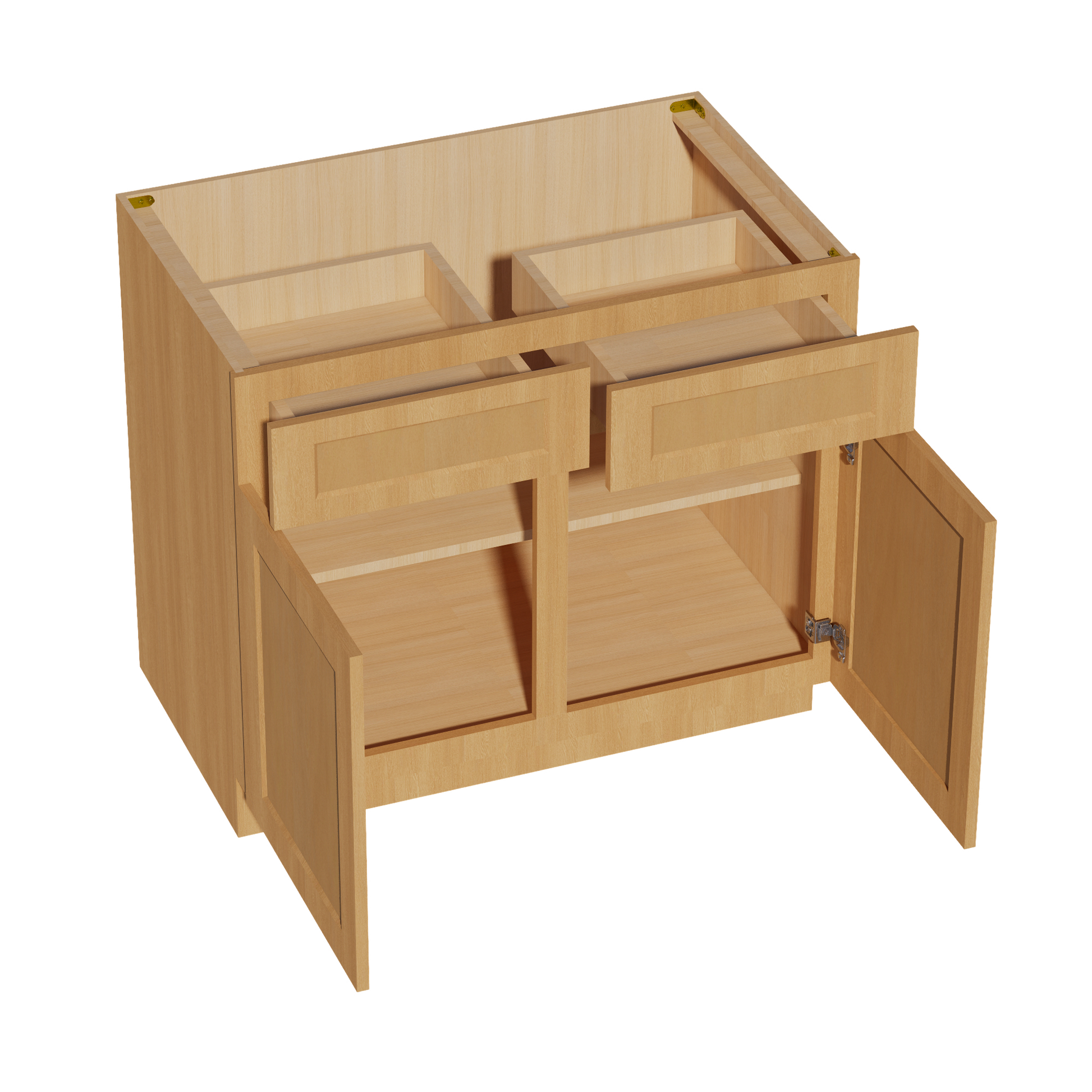 HT-B39: Timber Wood Shaker 39" 2 Drawers 2 Doors Standard Base Cabinet