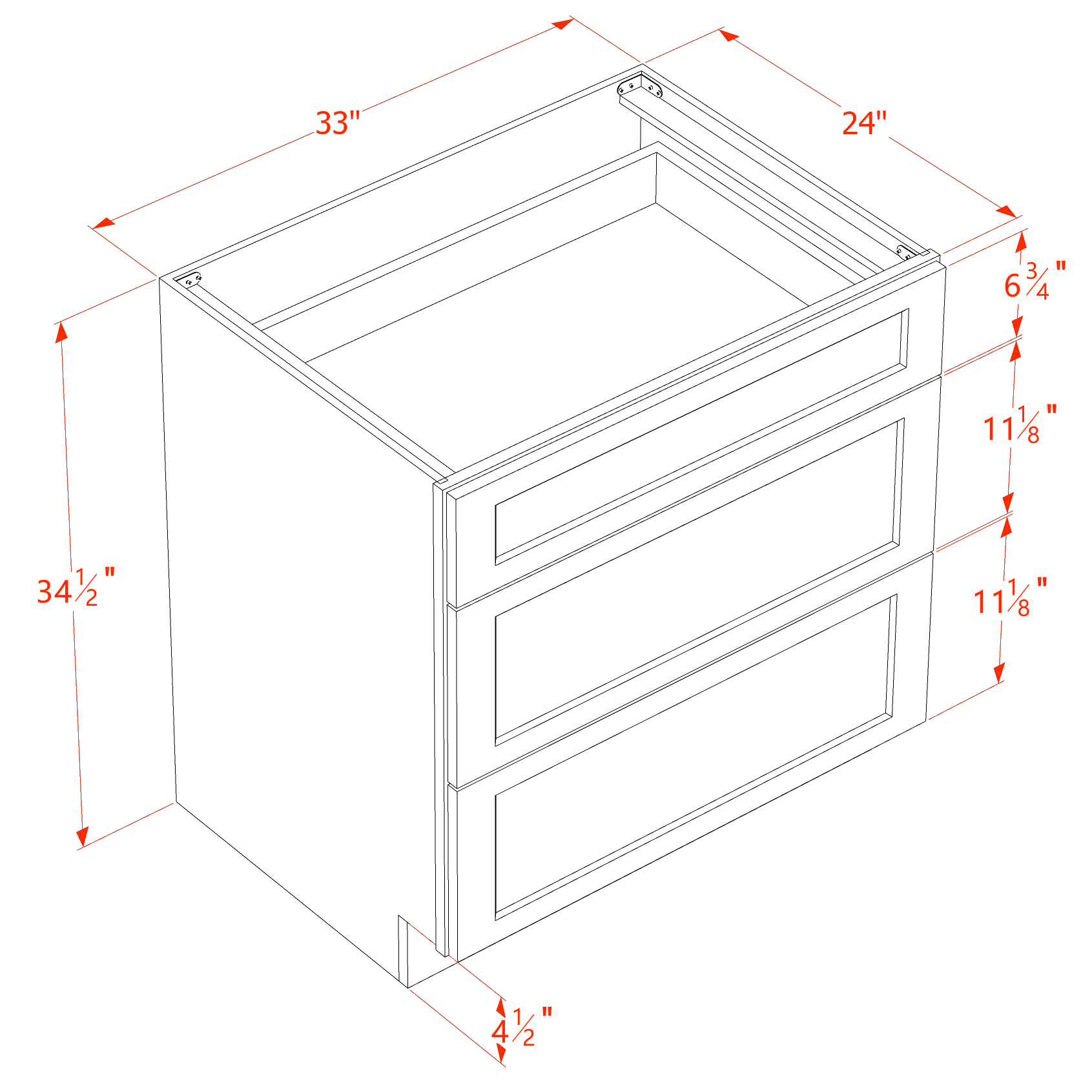 HT-DB33: Timber Wood Shaker 33" 3 Drawers Base Cabinet
