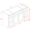 HT-VSD60SINGLE: Timber Wood Shaker 60"W x 34-1/2"H x 21"D 2 Doors, 6 Drawers & 1 False Drawer Single Sink Vanity Base Combo Cabinets