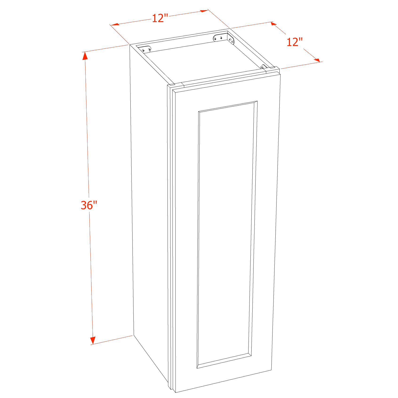 HT-W1236: Timber Wood Shaker 12"W x 36"H 1 Door & 2 Shelves Standard Wall Cabinet