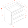 SF-DB33: Frost White Slim Shaker 33" 3 Drawers Base Cabinet