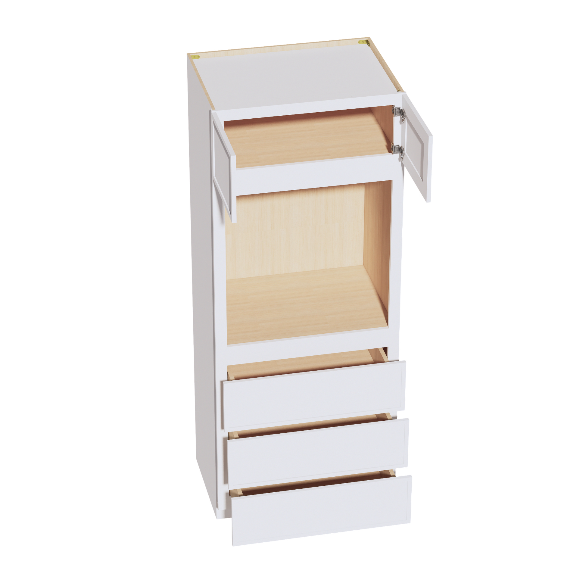 SF-OC3384: Frost White Slim Shaker 33"W x 84"H x 24"D 2 Doors & 3 Drawers Tall Oven Shelf Cabinets