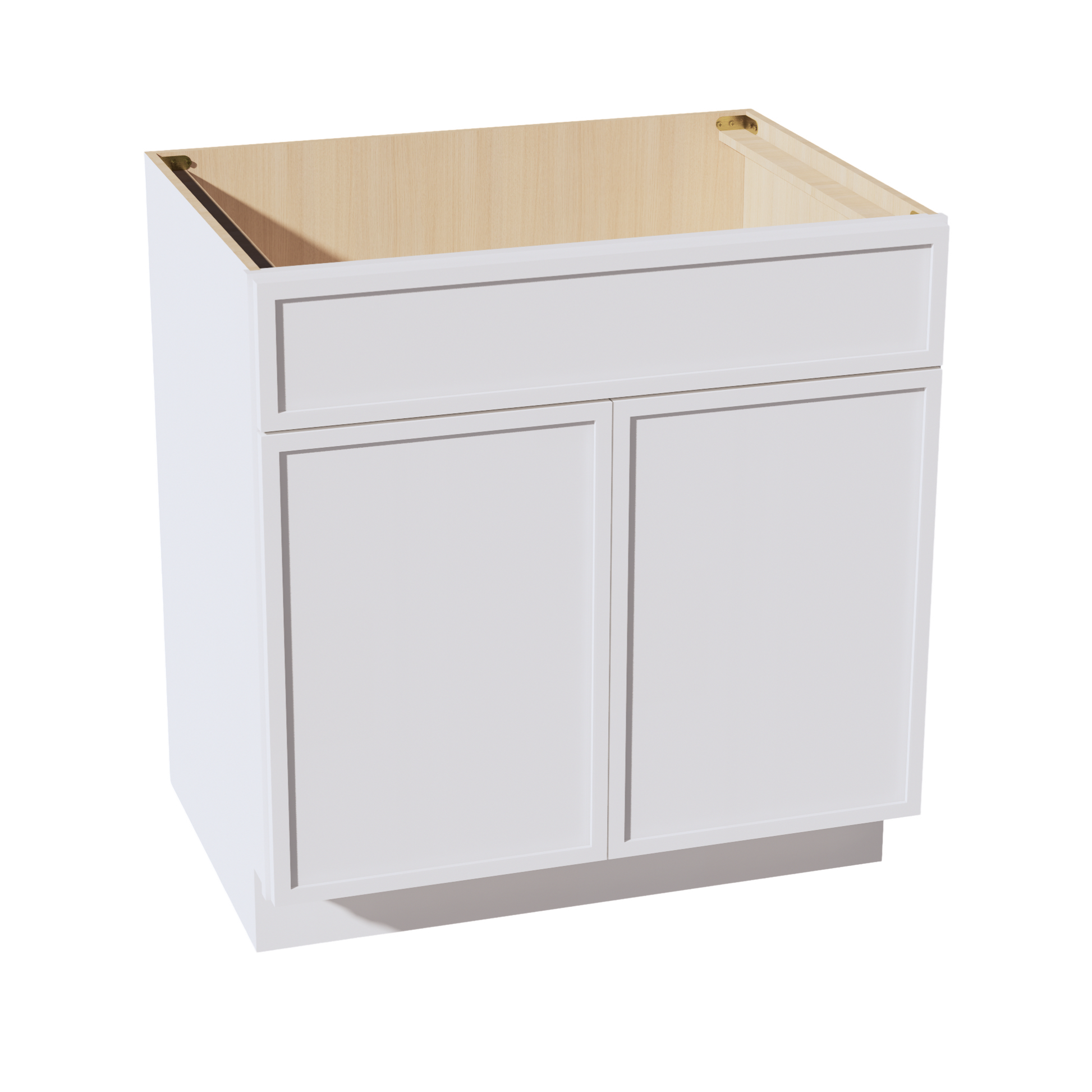 SF-SB33: Frost White Slim Shaker 33" 2 Doors 1 False Drawer Sink Base Cabinet