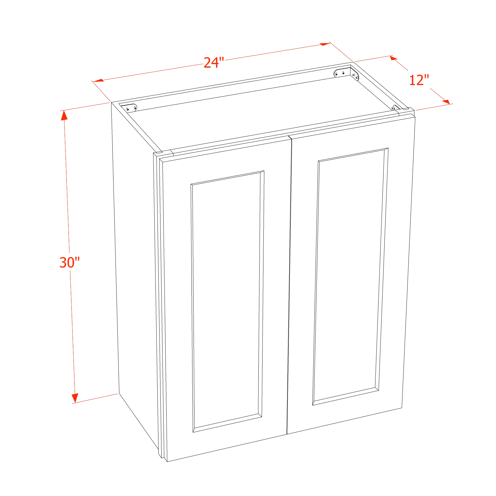 SF-W2430: Frost White Slim Shaker 24"W x 30"H 2 Doors & 2 Shelves Standard Wall Cabinet
