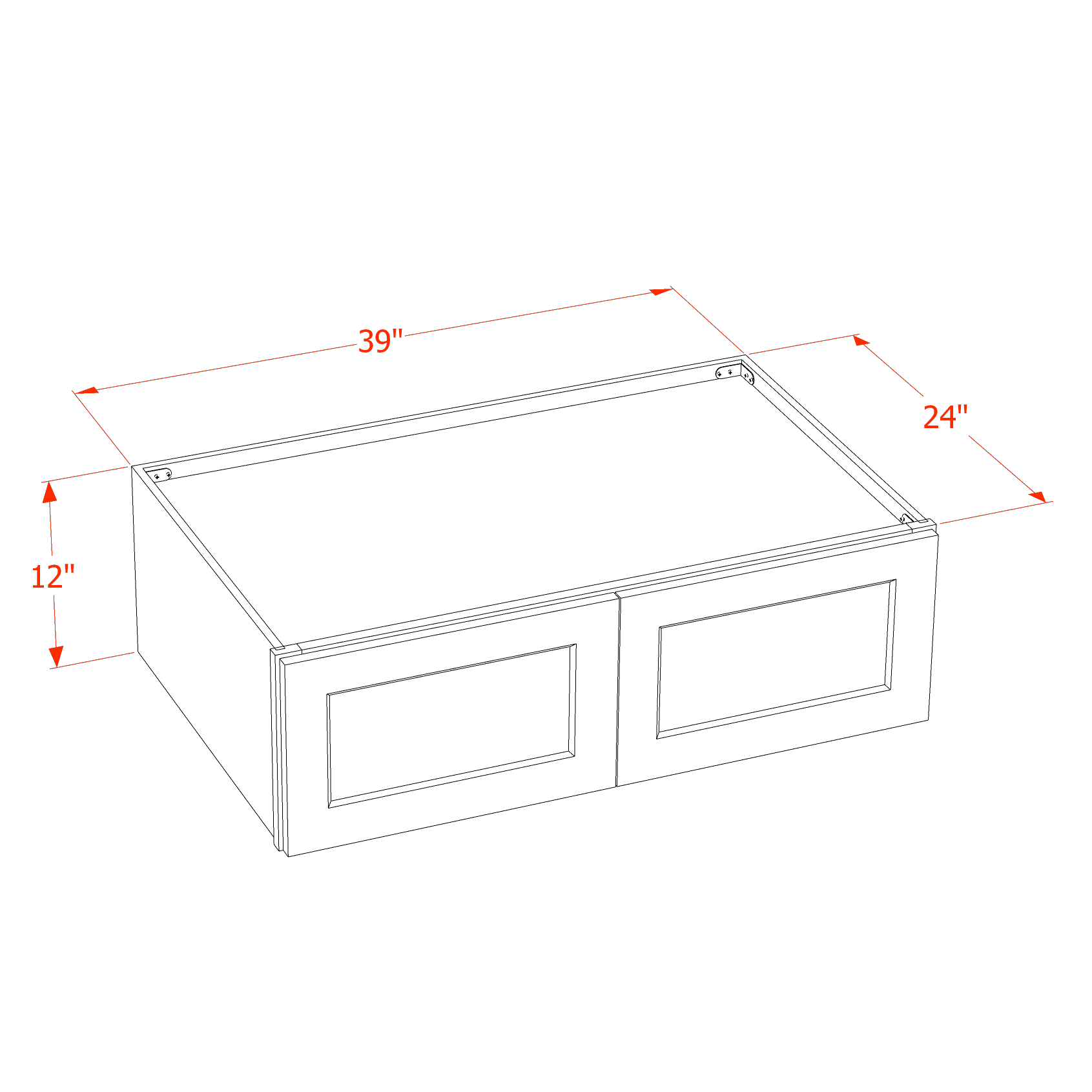 SF-W391224: Frost White Slim Shaker 39"W x 12"H x 24"D 2 Doors Standard Bridge Wall Cabinet