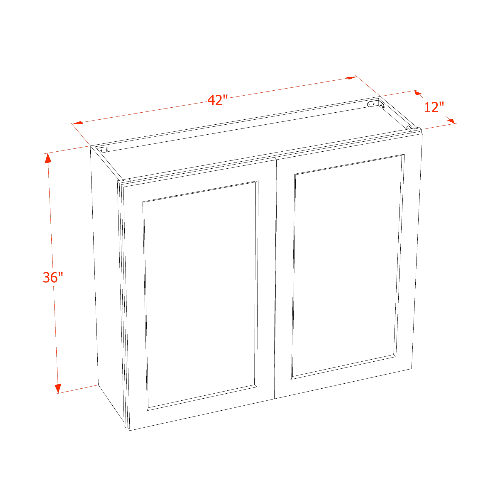 SF-W4236: Frost White Slim Shaker 42"W x 36"H 2 Doors & 2 Shelves Standard Wall Cabinet