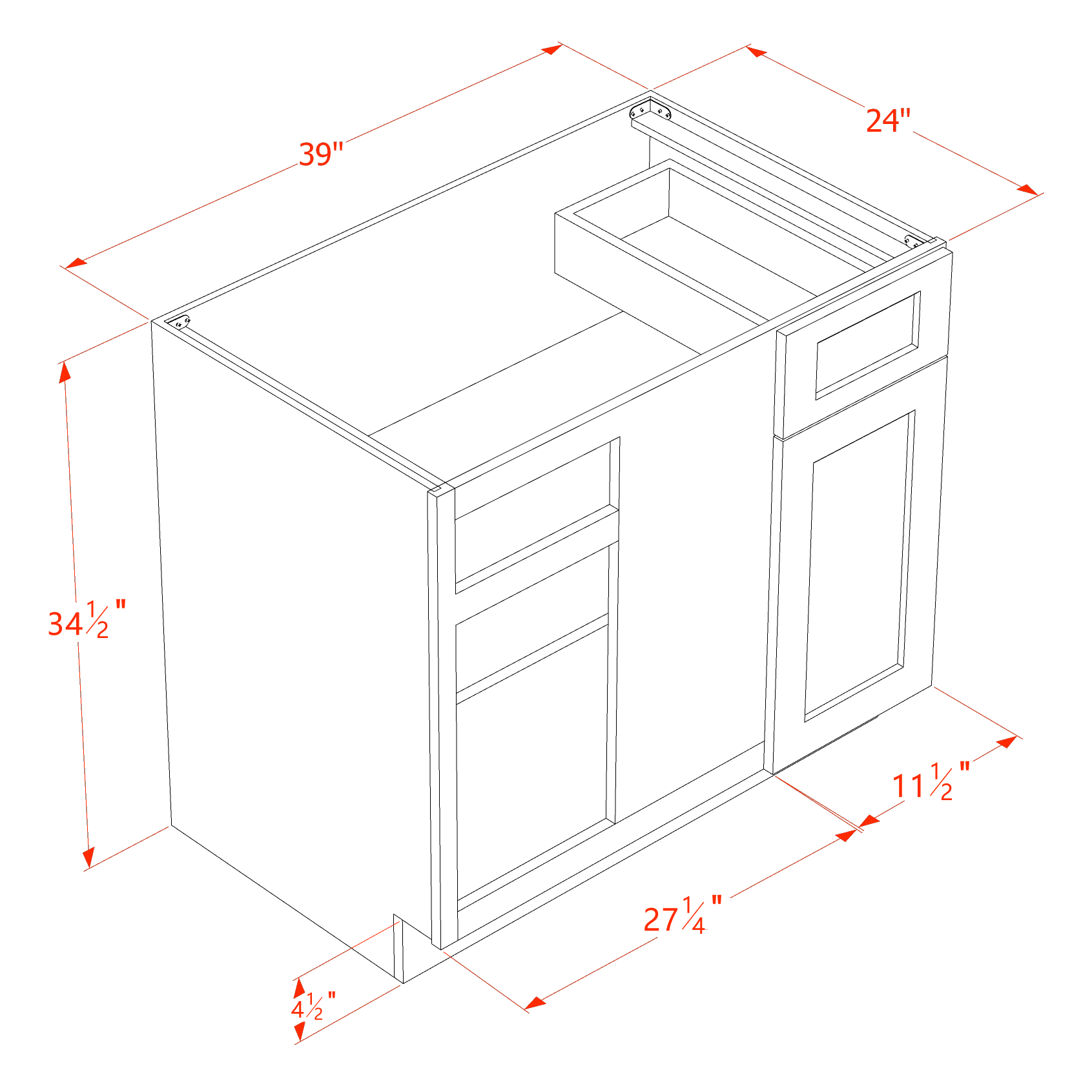 SM-BBC39/42: Mocha Brown Slim Shaker 39" 1 Door - 1 Drawer Blind Corner Base Cabinet