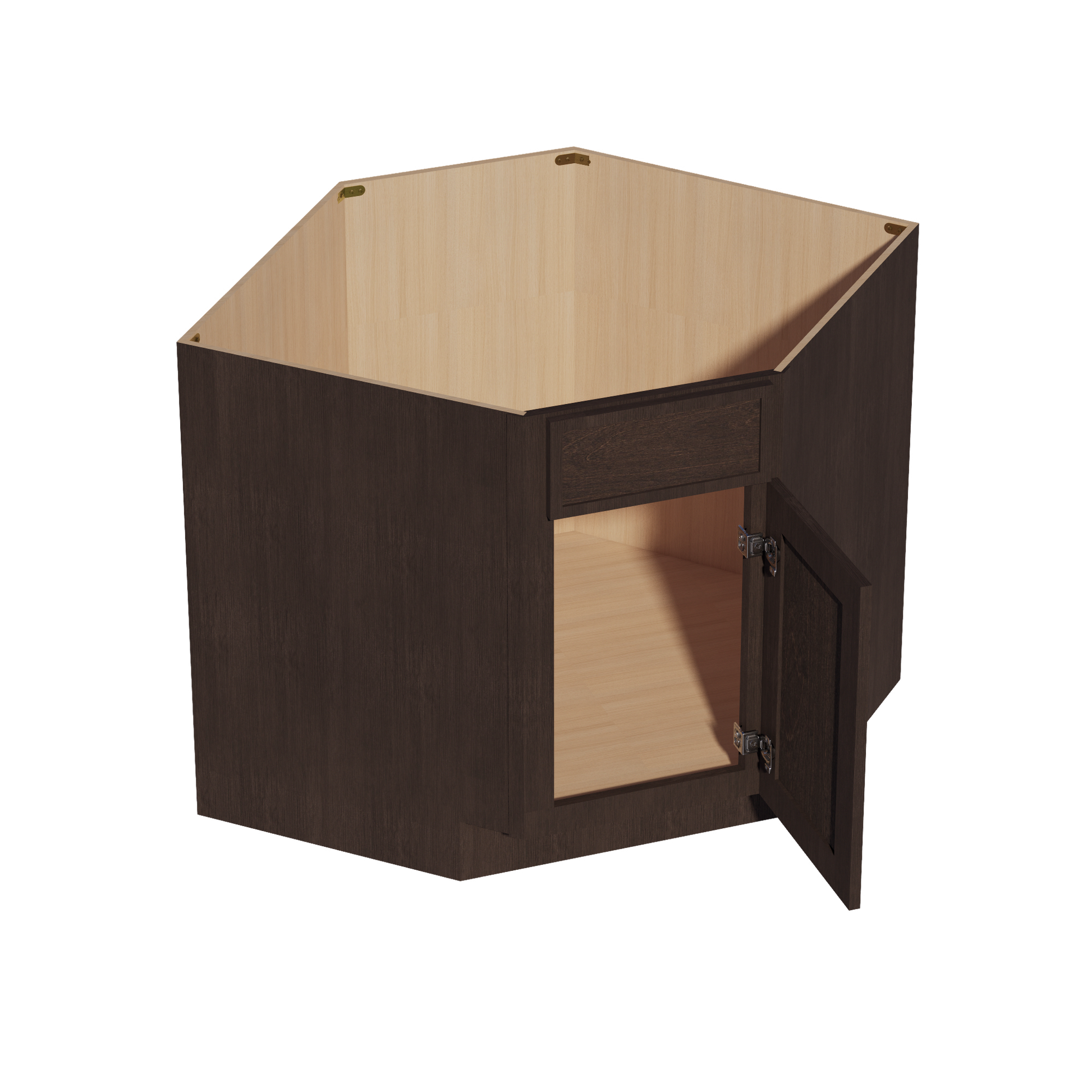 SM-DSB36: Mocha Brown Slim Shaker 39" 1 Door 1 False Drawer Corner Sink Base Cabinets