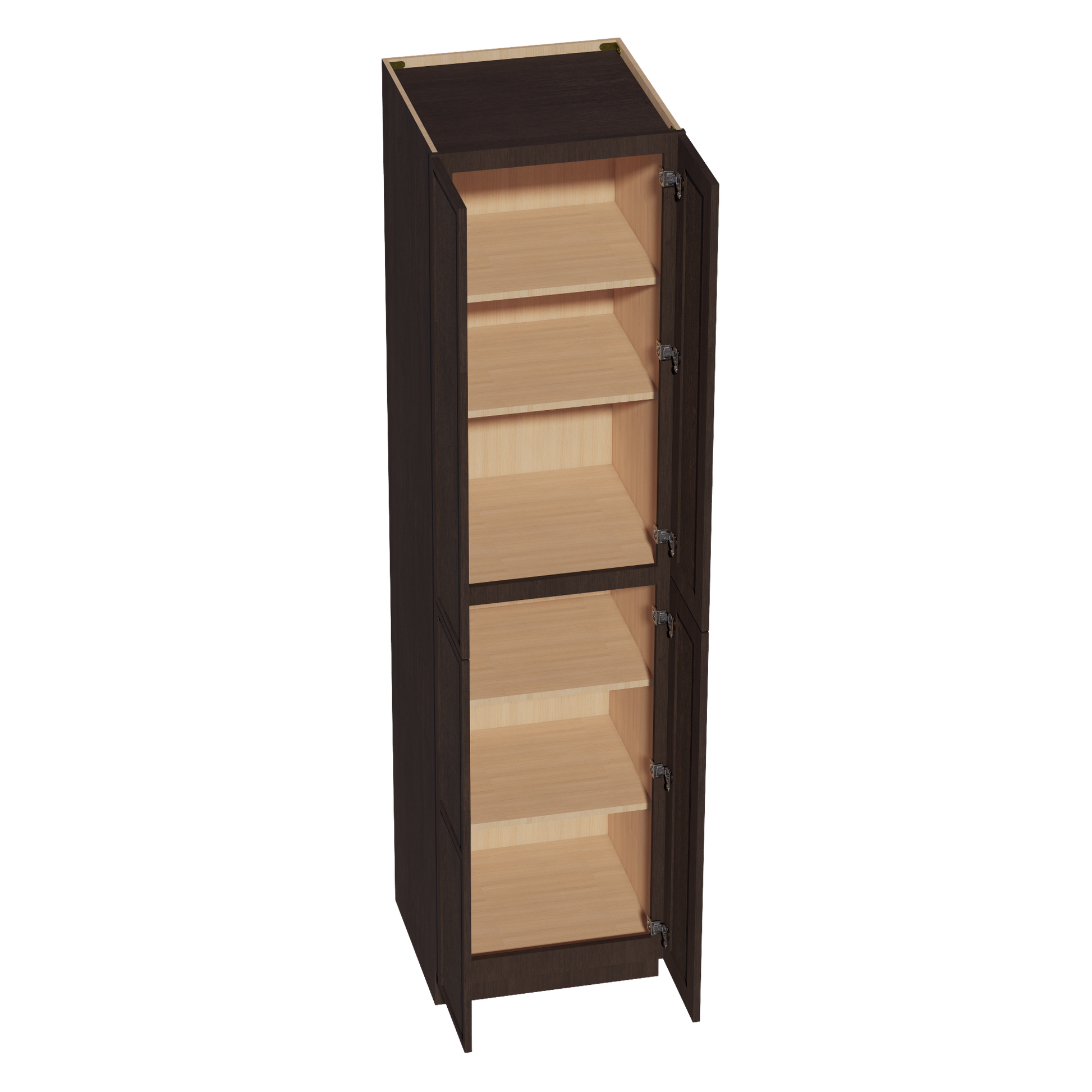 SM-TP2496: Mocha Brown Slim Shaker 24"W x 96"H x 24"D 4 Door & 6 Shelves Tall Shelf Pantry Cabinets