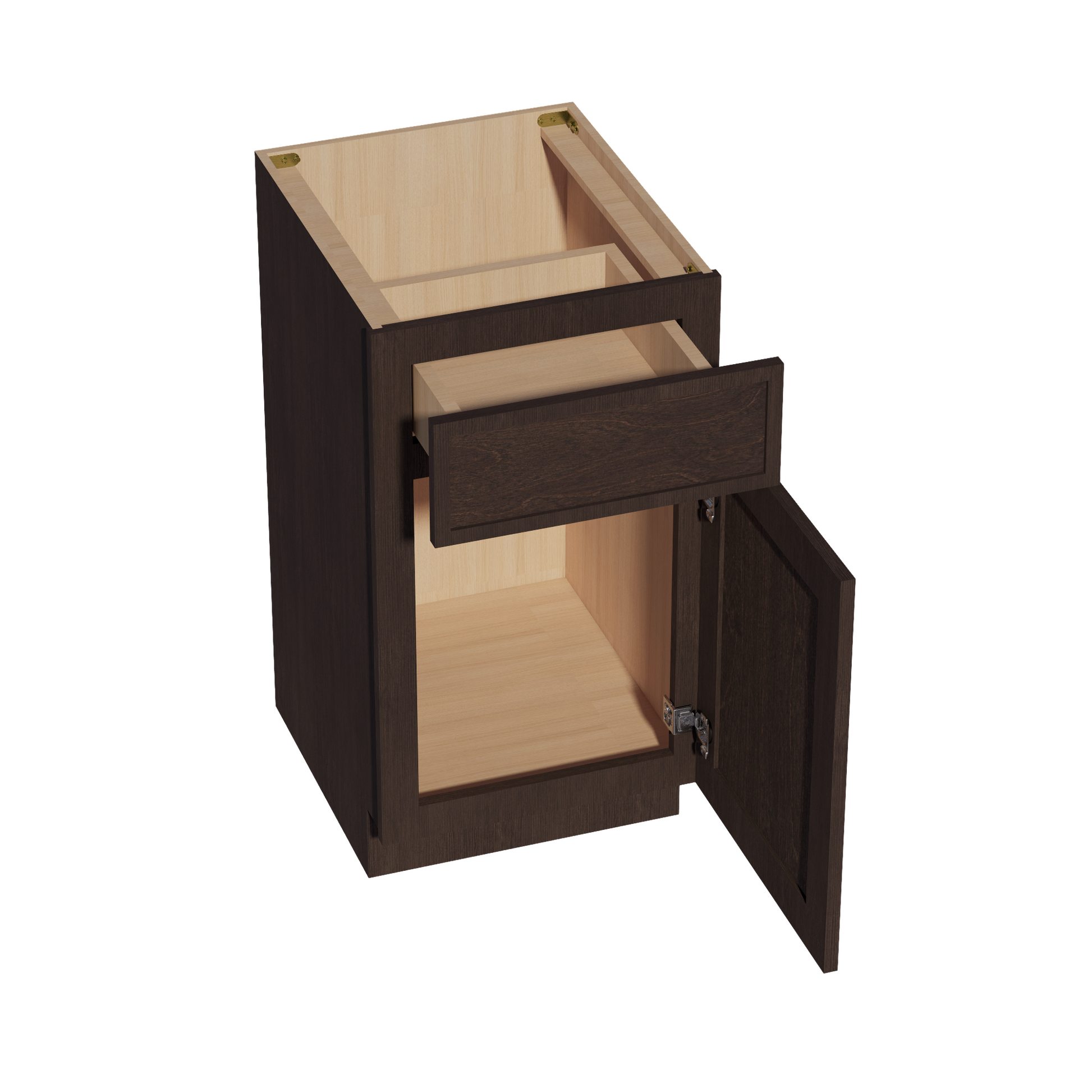 SM-VB1821: Mocha Brown Slim Shaker 18"W x 34-1/2"H x 21"D 1 Door & 1 Drawer Single Door Vanity Base Cabinets