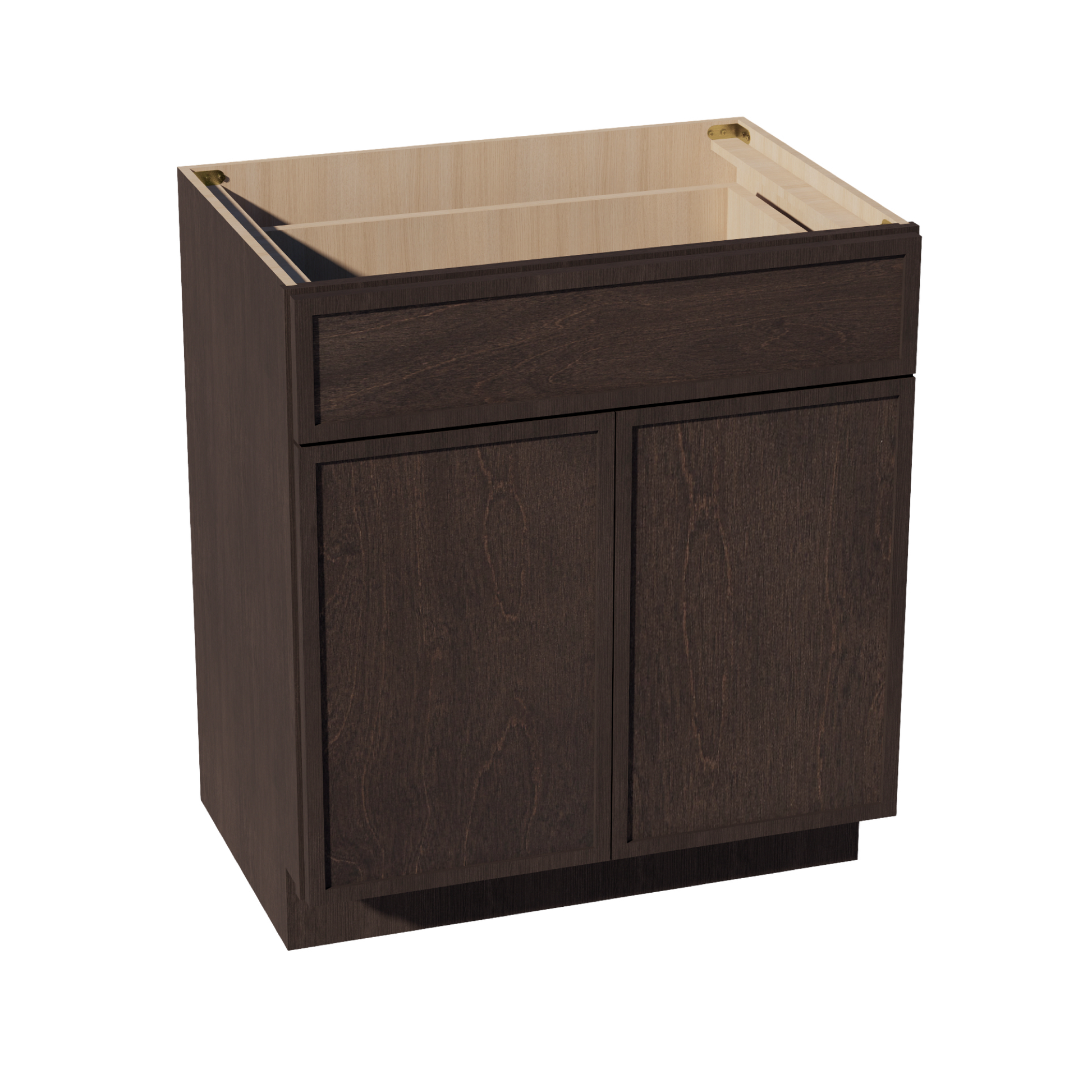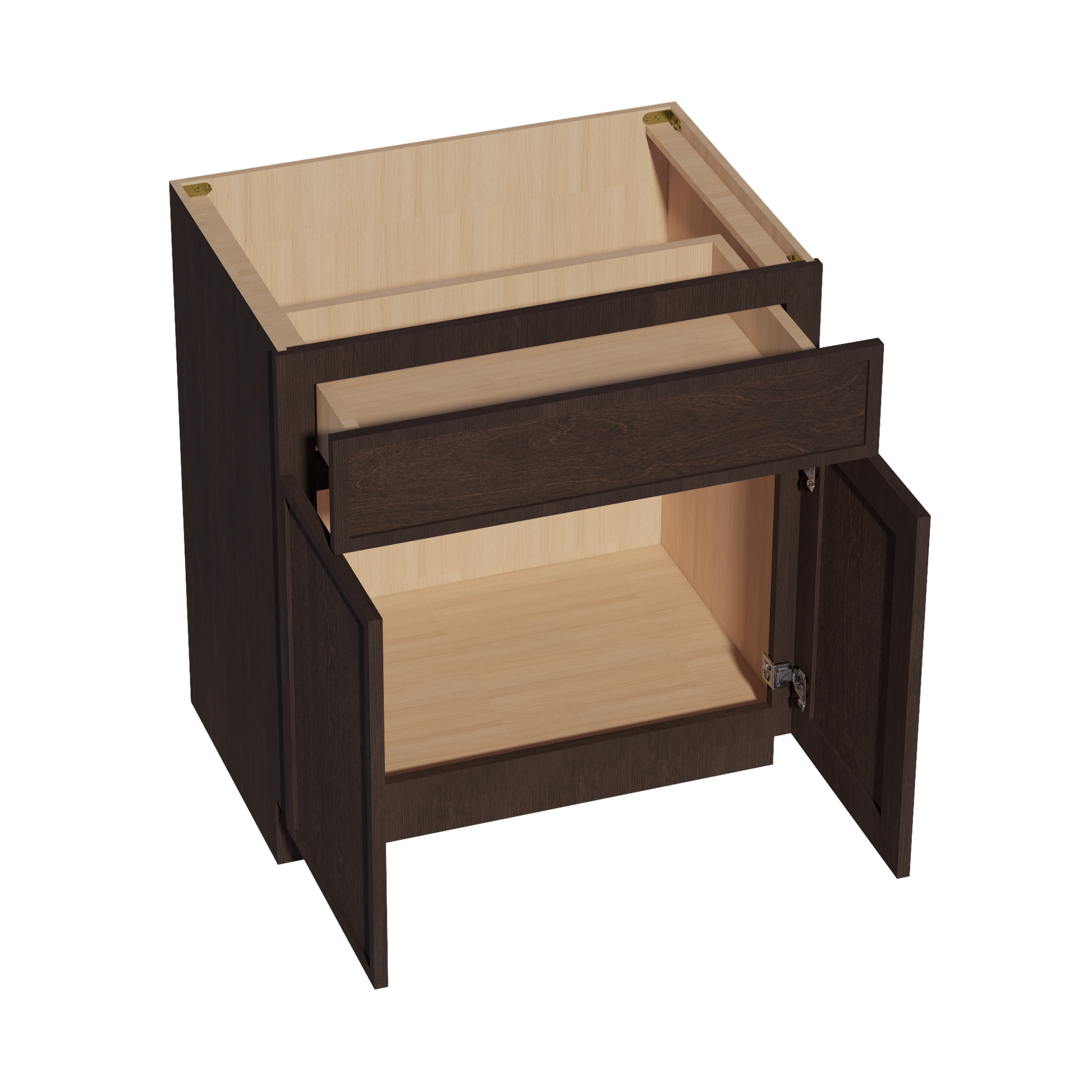 SM-VB3021: Mocha Brown Slim Shaker 30"W x 34-1/2"H x 21"D 2 Doors & 1 Drawer Double Door Vanity Base Cabinets
