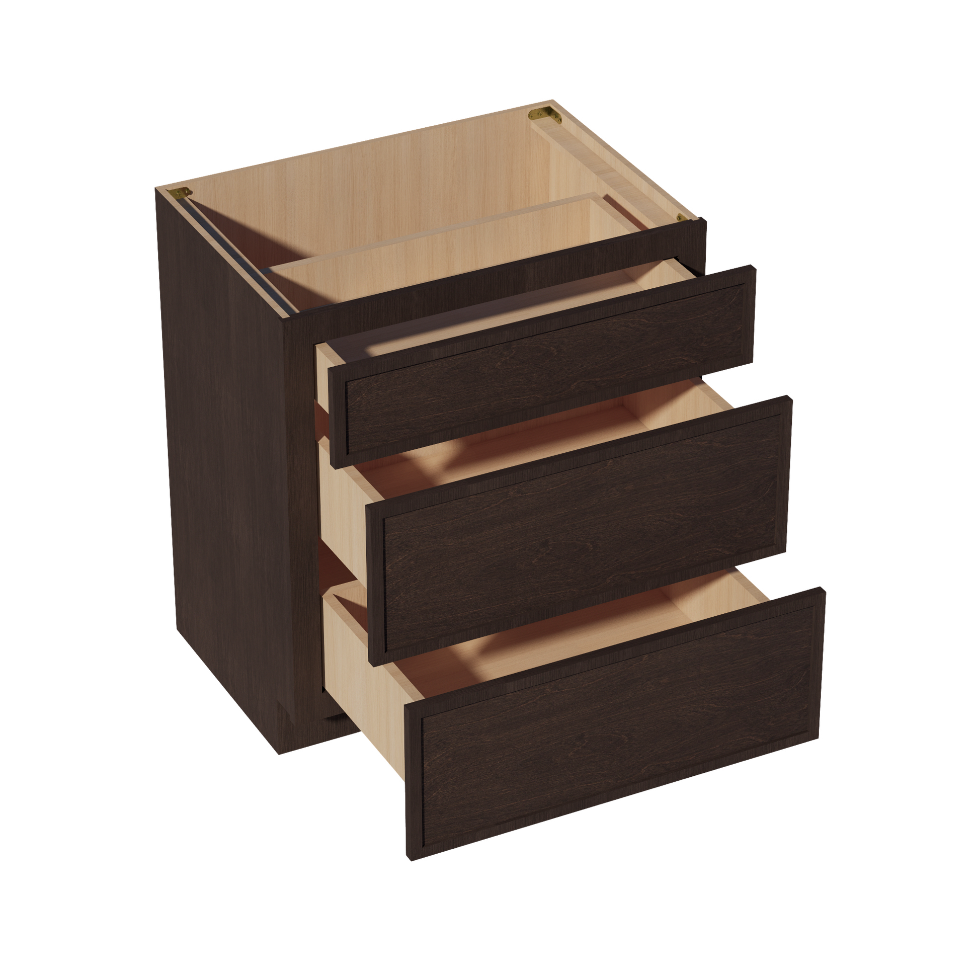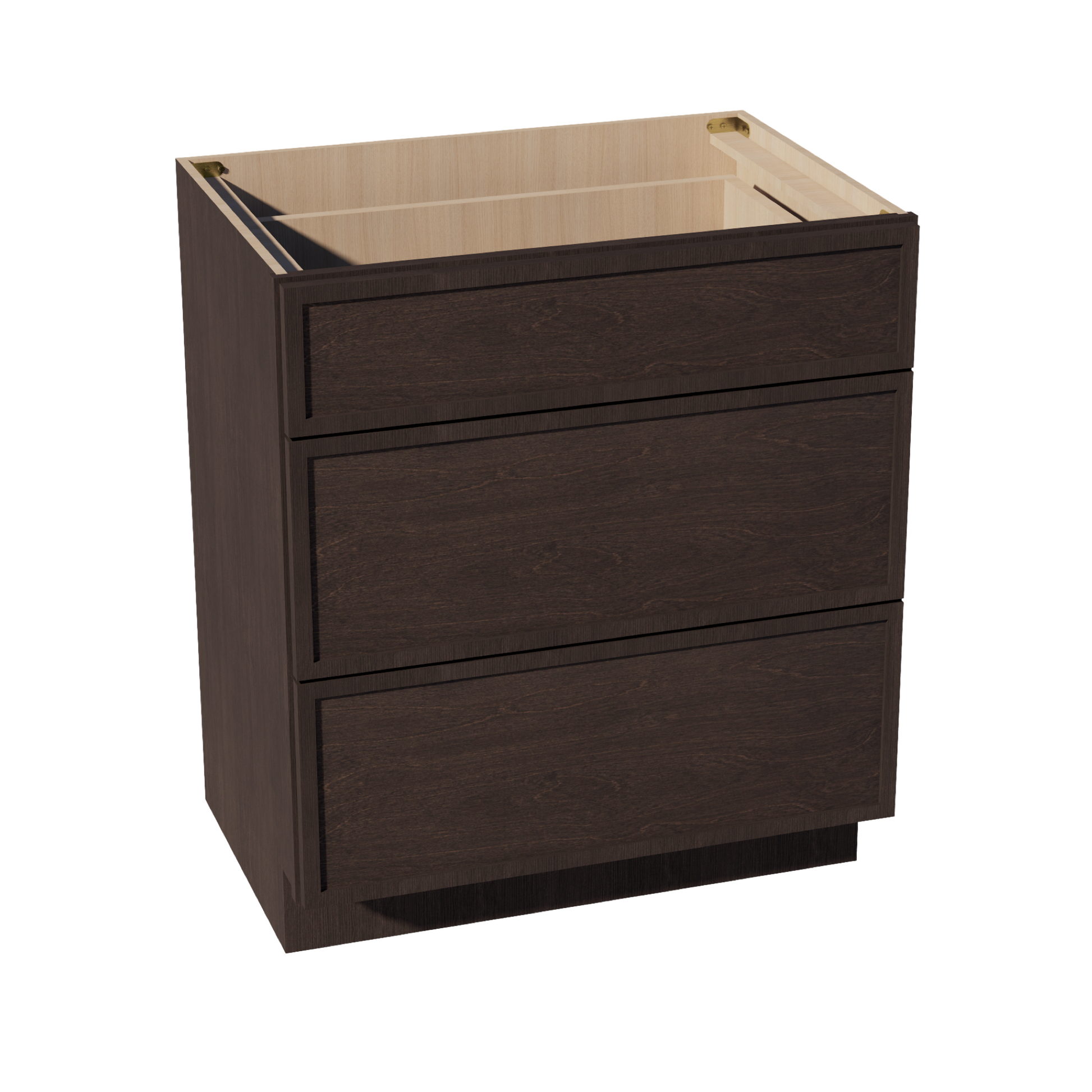 SM-VDB3021: Mocha Brown Slim Shaker 30"W x 34-1/2"H x 21"D 3 Drawers Vanity Base Cabinets