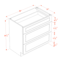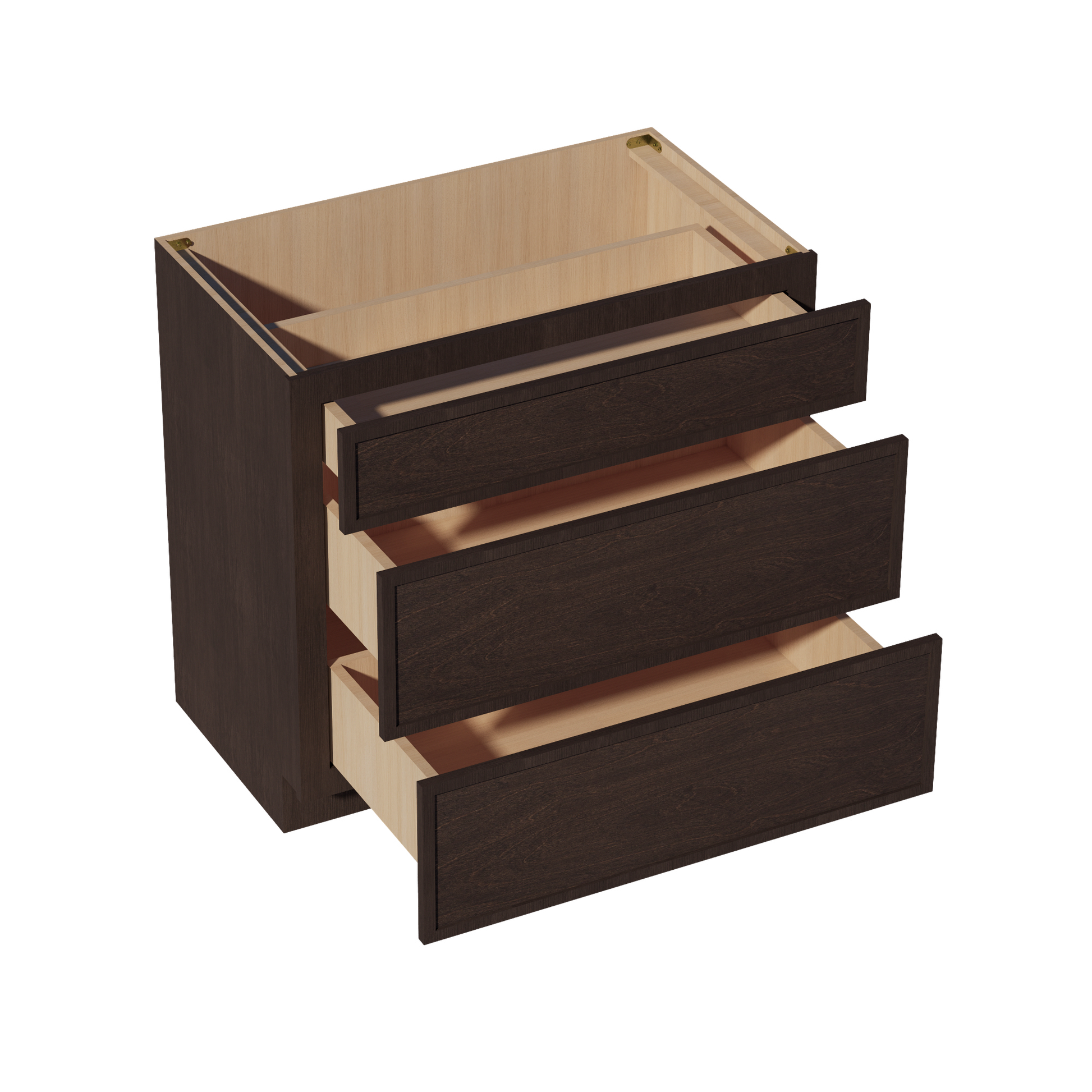 SM-VDB3621: Mocha Brown Slim Shaker 36"W x 34-1/2"H x 21"D 3 Drawers Vanity Base Cabinets