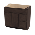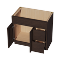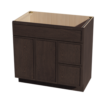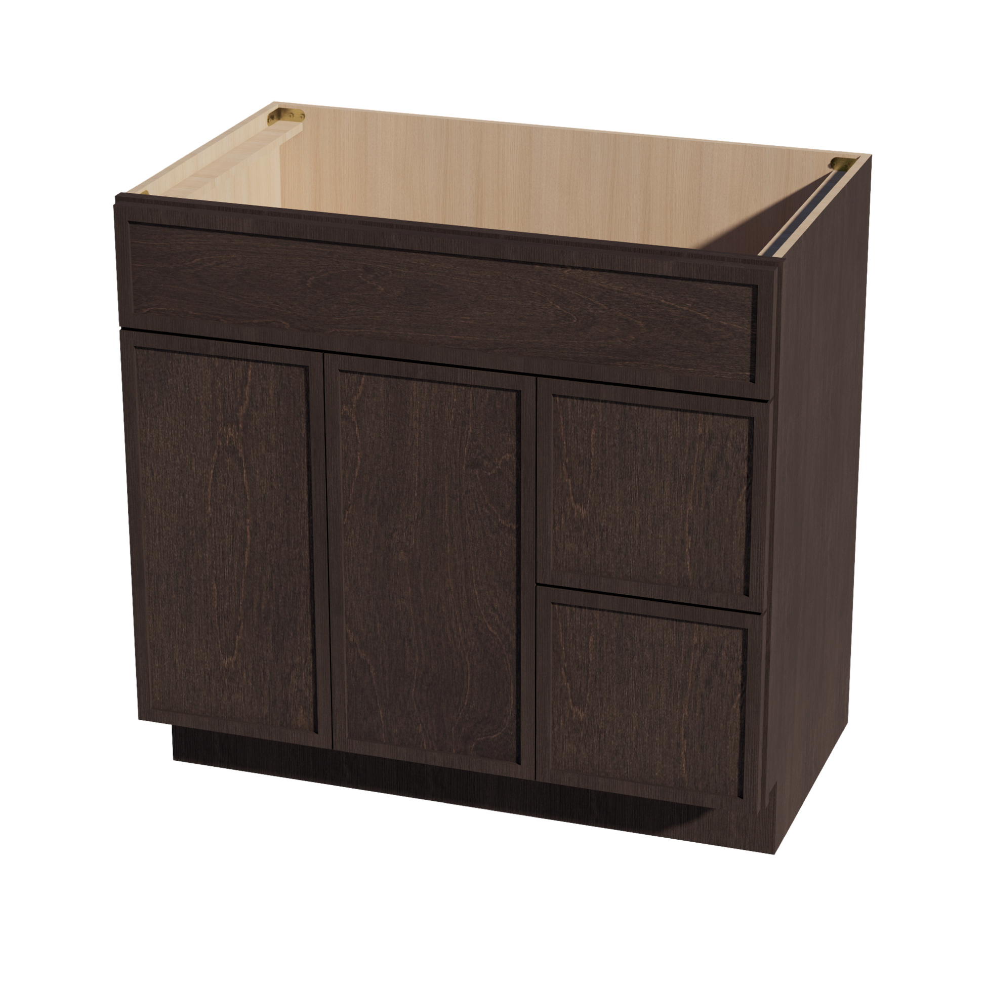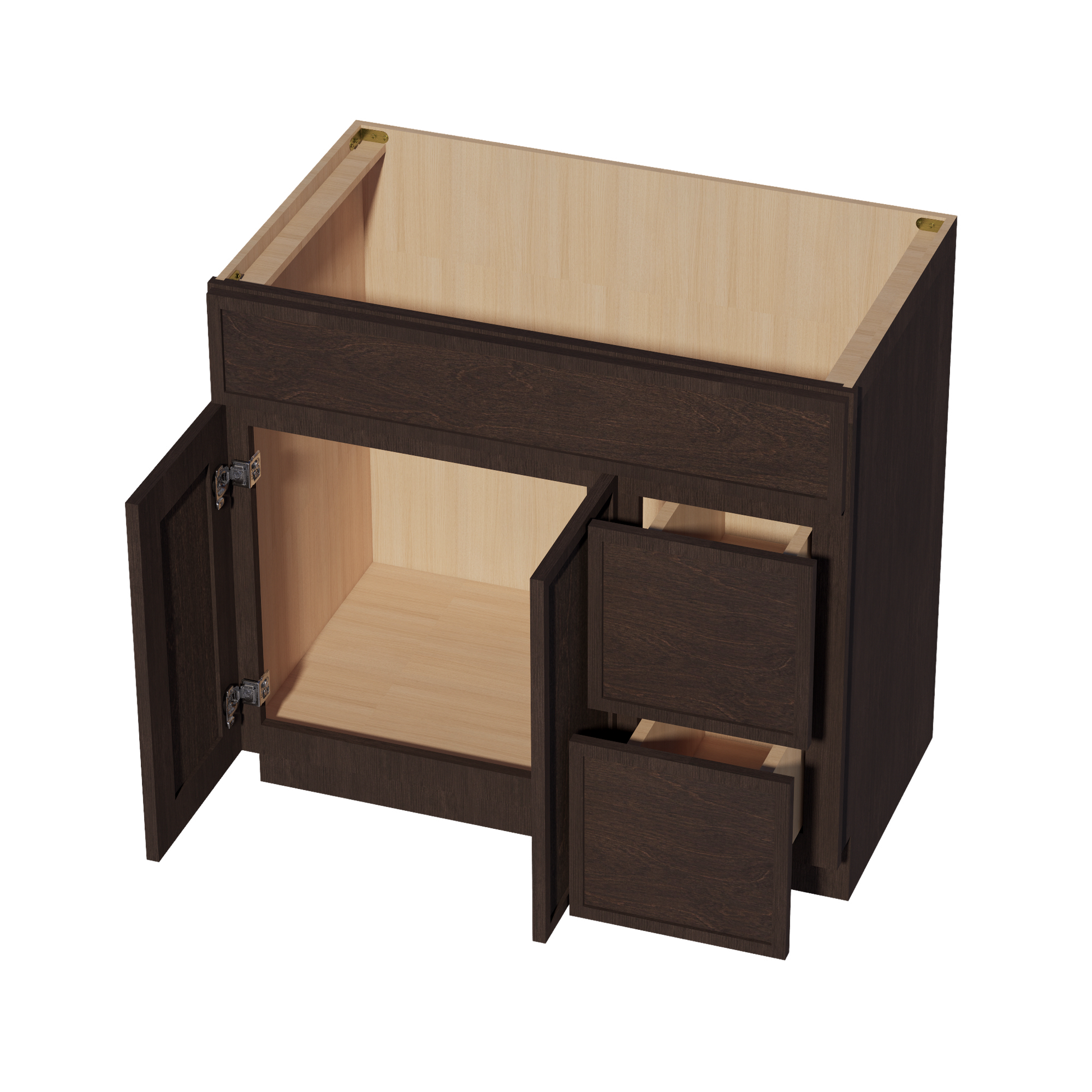SM-VSD3621R: Mocha Brown Slim Shaker 36"W x 34-1/2"H x 21"D 2 Doors & 2 Right Drawers Offset Vanity Sink Base Cabinets