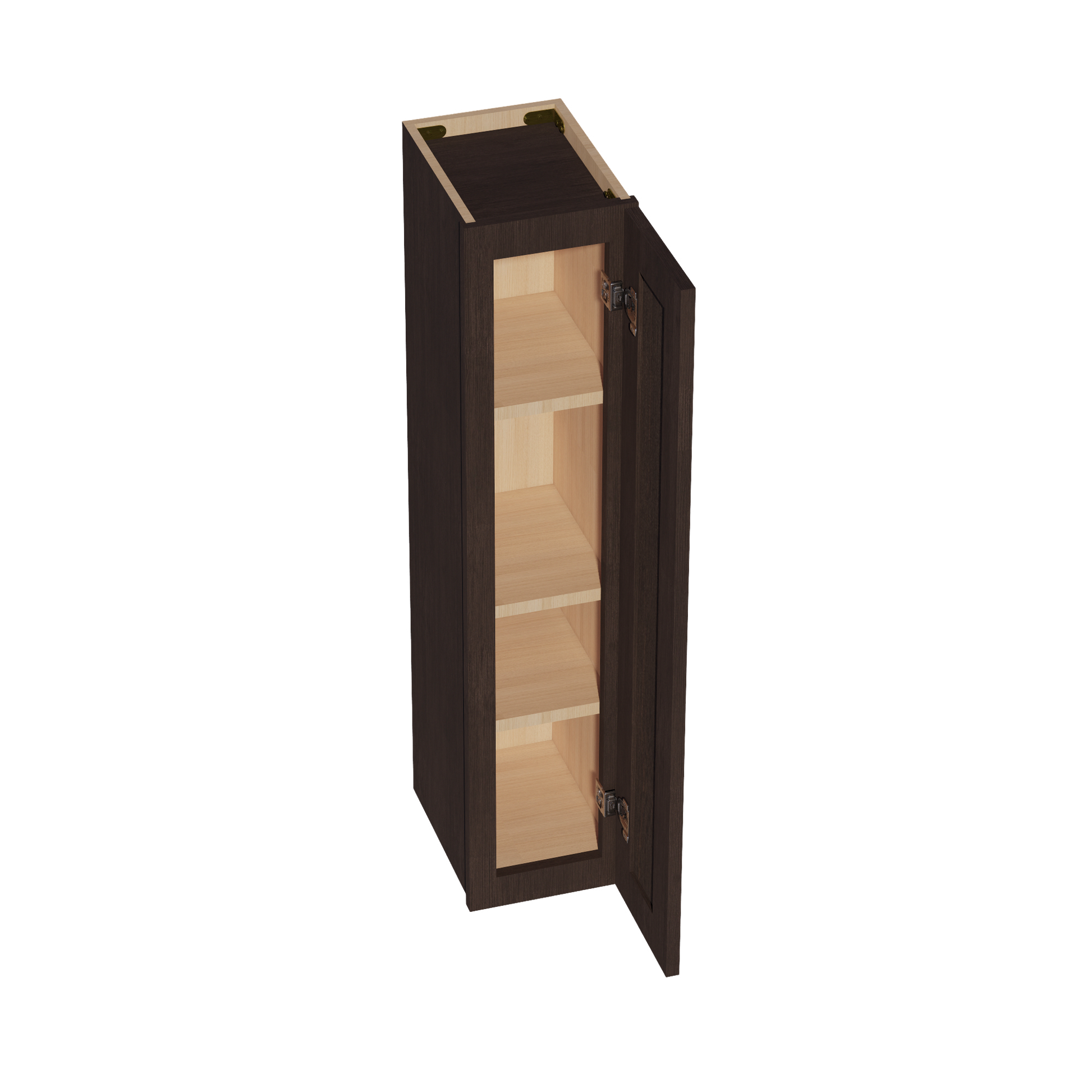 SM-W0942: Mocha Brown Slim Shaker 09"W x 42"H 1 Door & 3 Shelves Standard Wall Cabinet