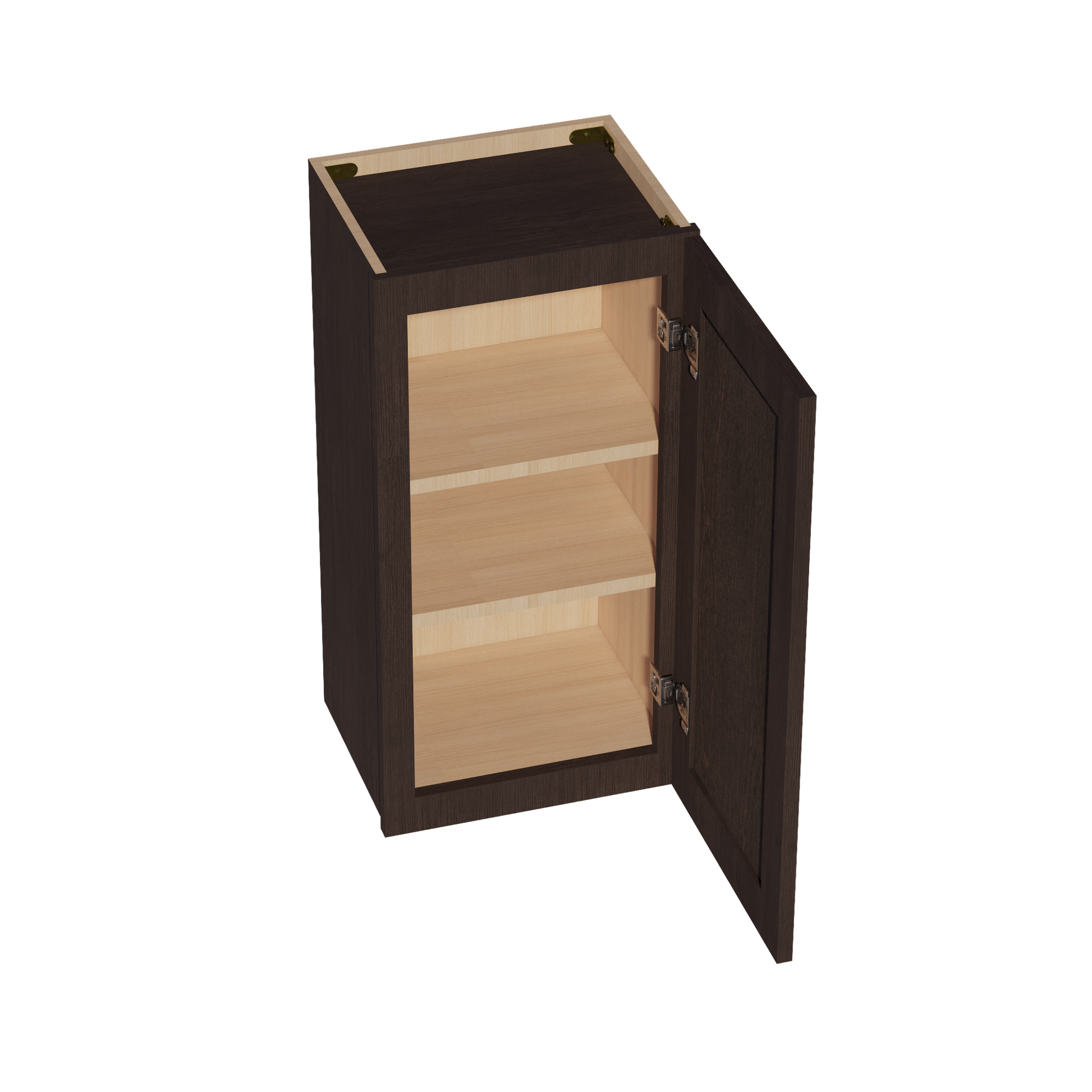 SM-W1530: Mocha Brown Slim Shaker 15"W x 30"H 1 Door & 2 Shelves Standard Wall Cabinet