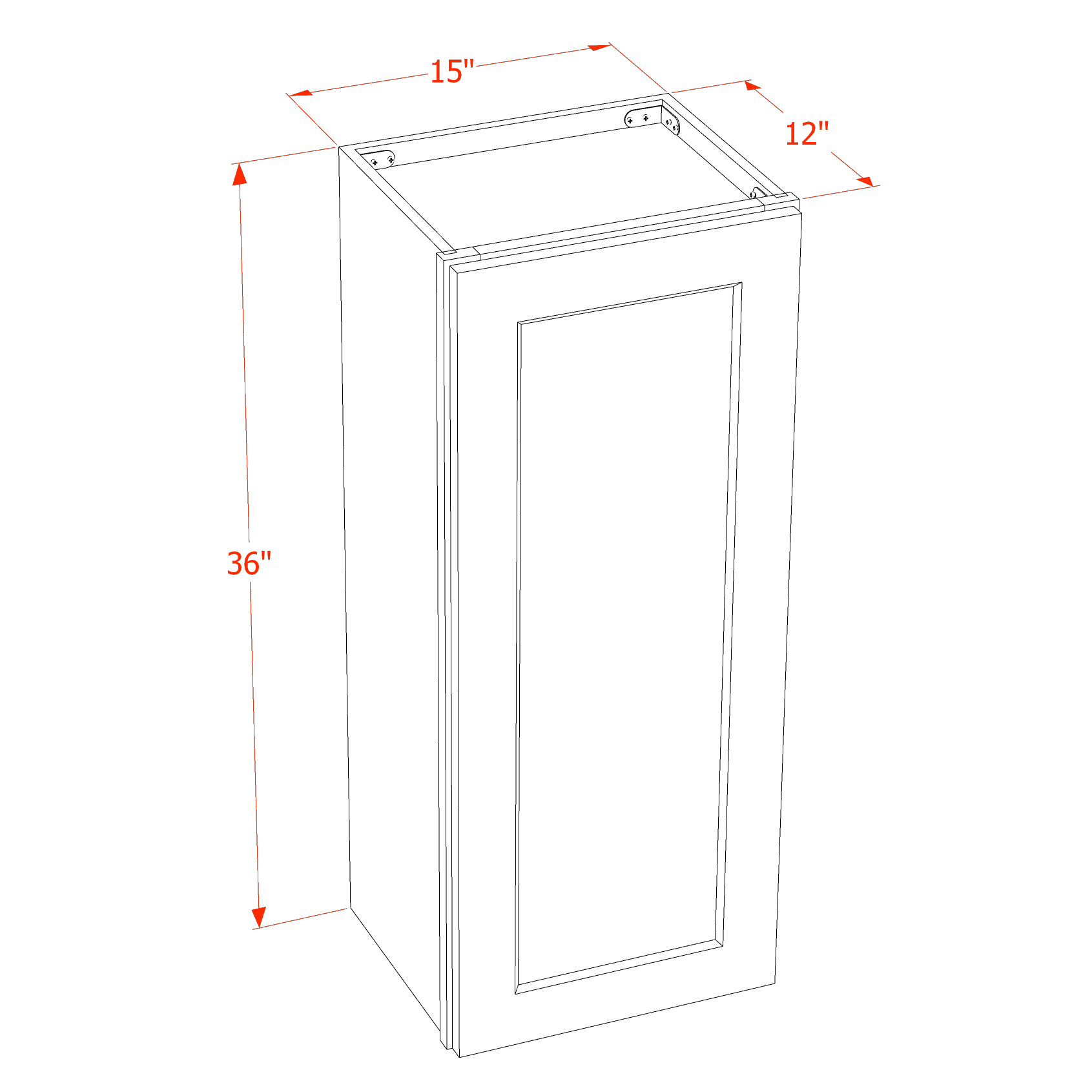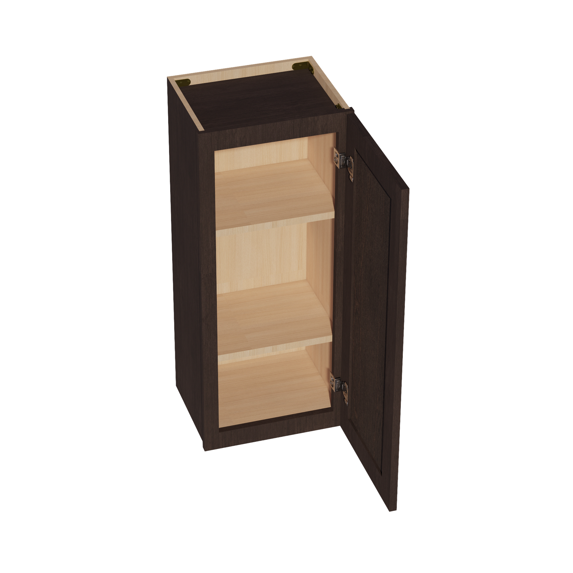 SM-W1536: Mocha Brown Slim Shaker 15"W x 36"H 1 Door & 2 Shelves Standard Wall Cabinet