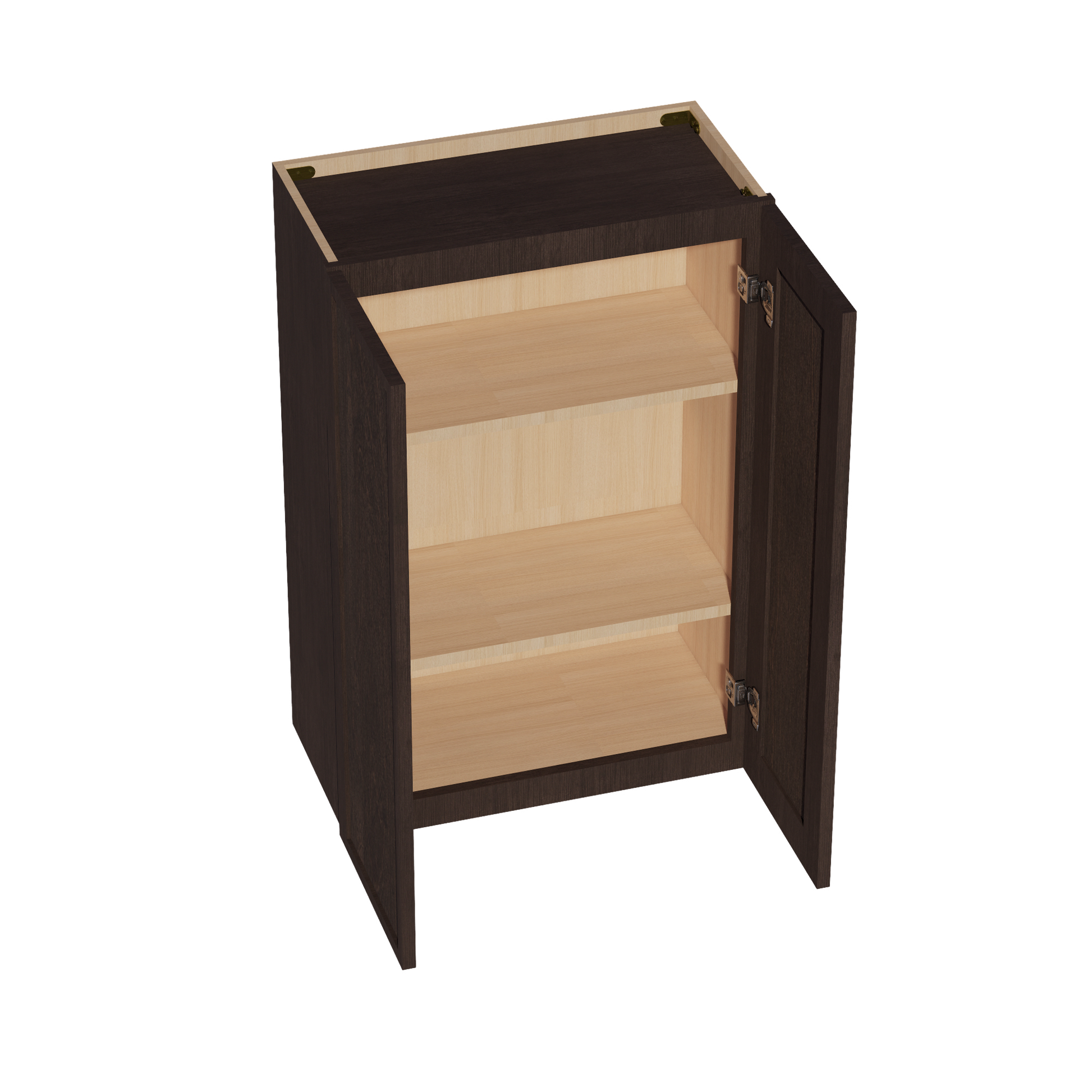 SM-W2436: Mocha Brown Slim Shaker 24"W x 36"H 2 Doors & 2 Shelves Standard Wall Cabinet