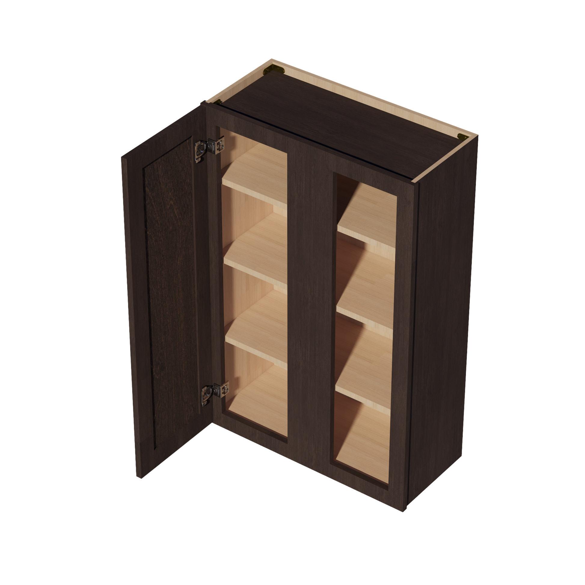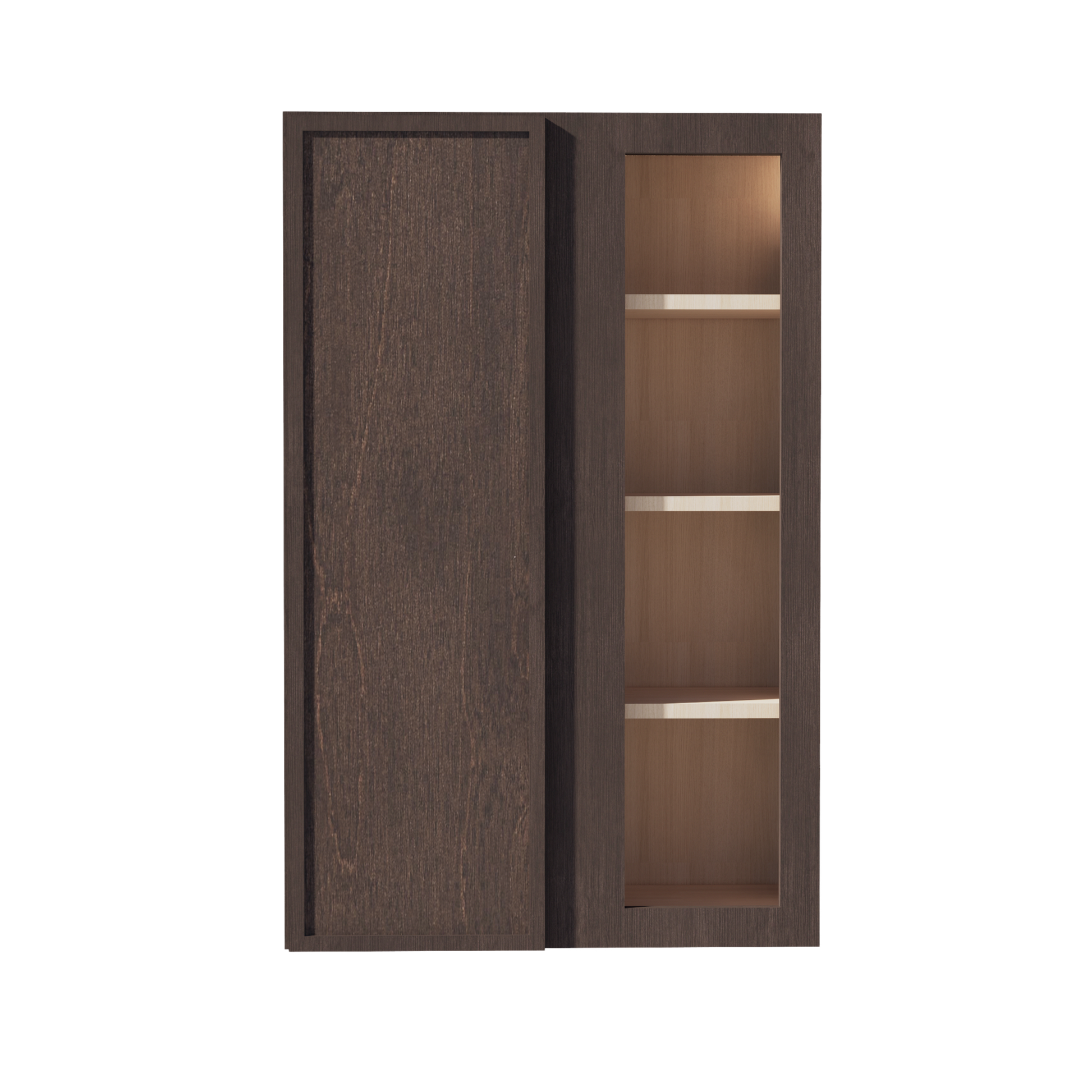 SM-WBC2742: Mocha Brown Slim Shaker 27"W x 42"H 1 Door & 2 Shelves Wall Blind Corner Cabinets