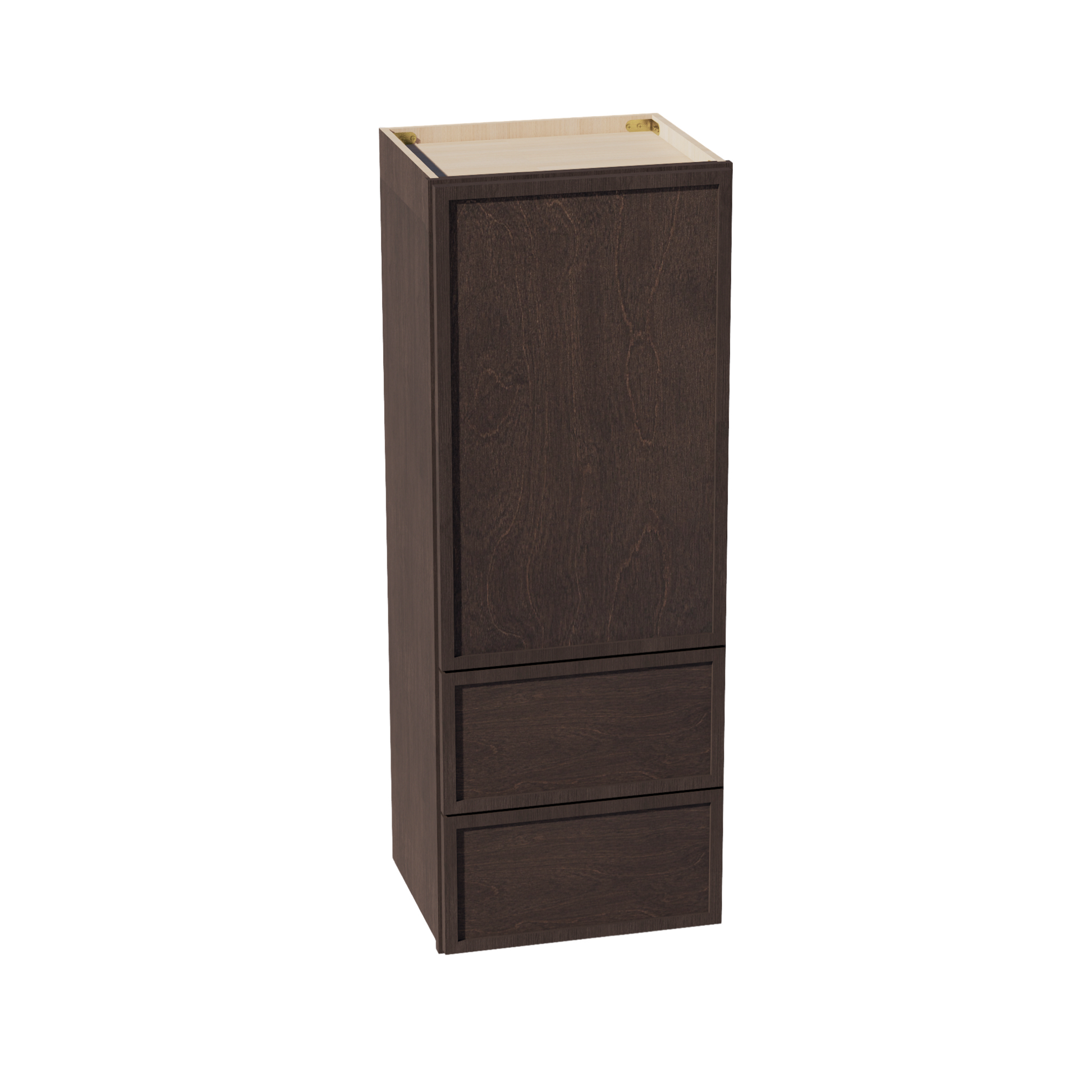 SM-WD1848: Mocha Brown Slim Shaker 18"W x 48"H 1 Door & 2 Drawers Special Wall Cabinet