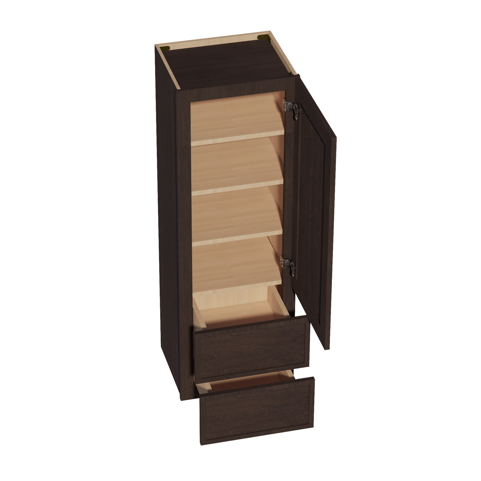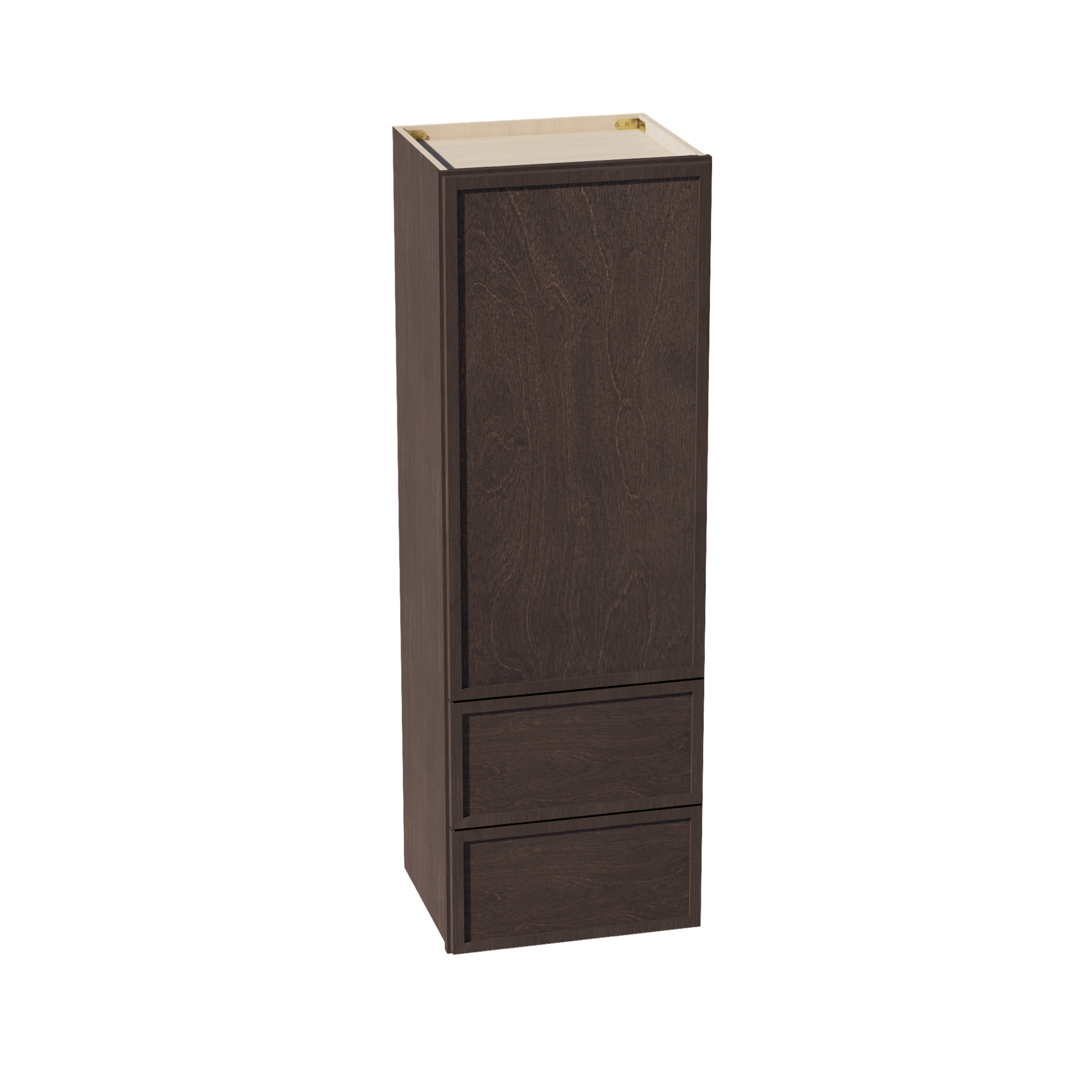SM-WD1854: Mocha Brown Slim Shaker 18"W x 54"H 1 Door & 2 Drawers Special Wall Cabinet