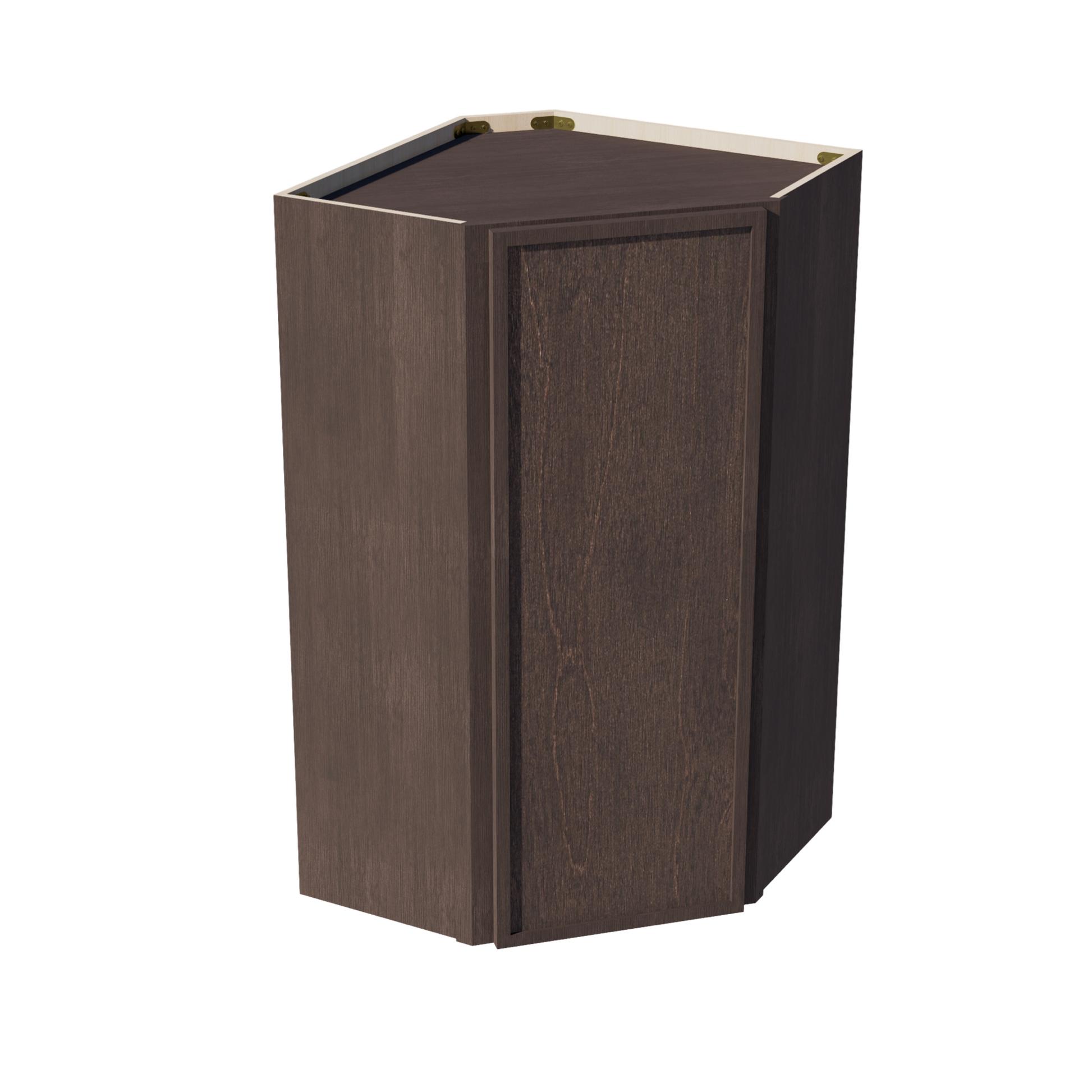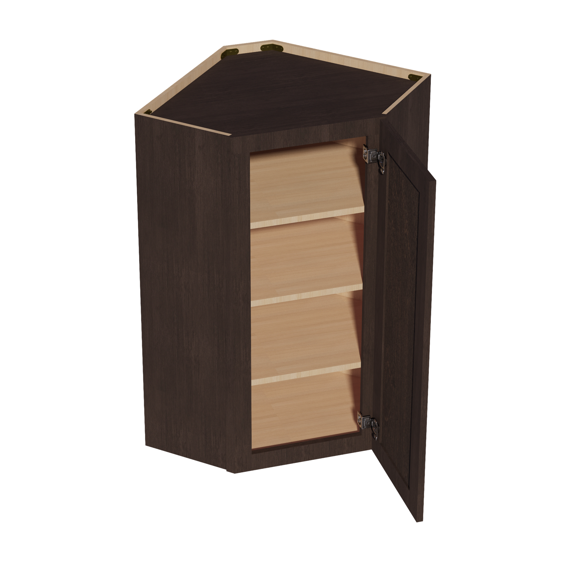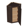 SM-WDC2442: Mocha Brown Slim Shaker 24"W x 42"H 1 Door & 2 Shelves Diagonal Wall Corner Cabinet