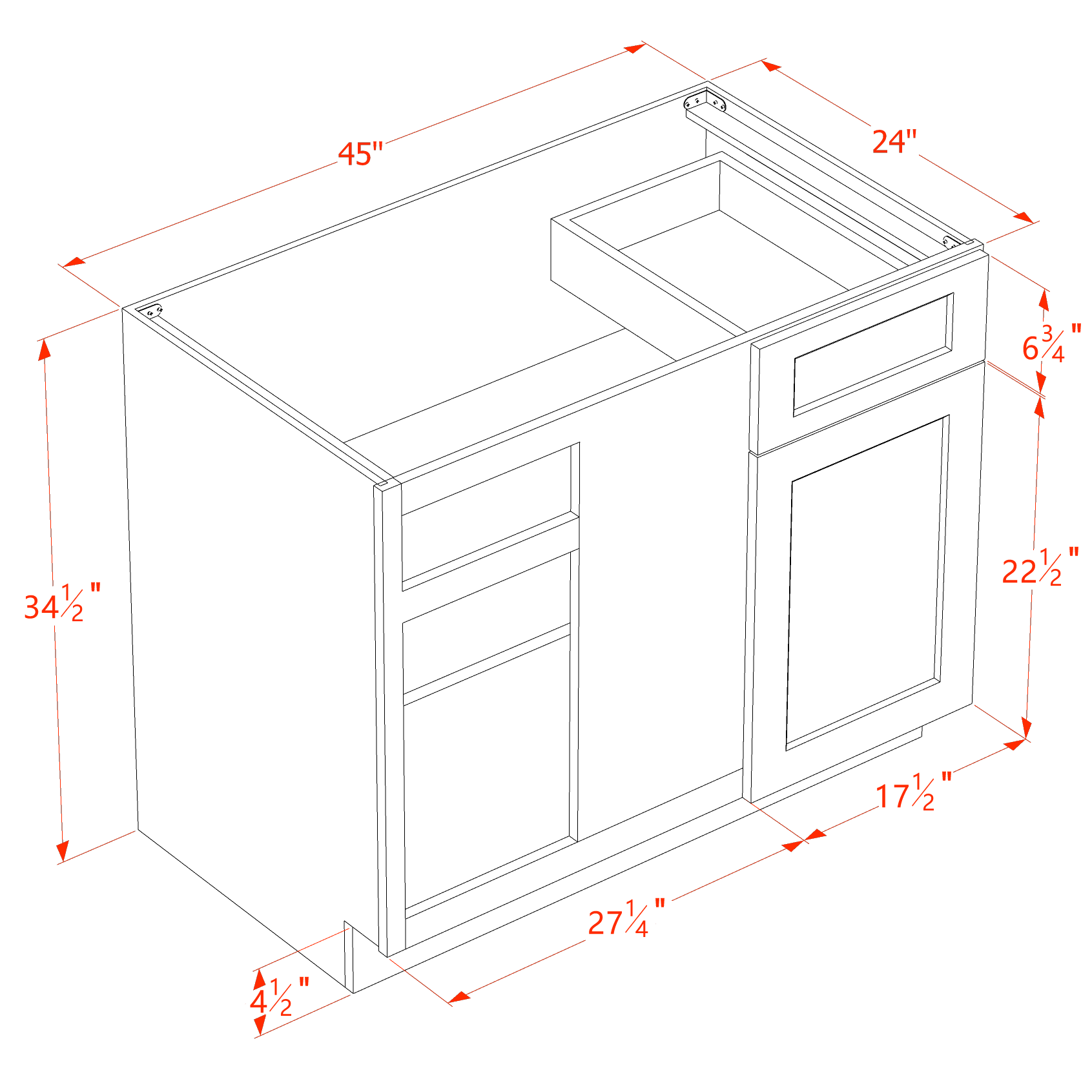 TG-BBC42/45: Soft Green Shaker 42" 1 Door - 1 Drawer Blind Corner Base Cabinets