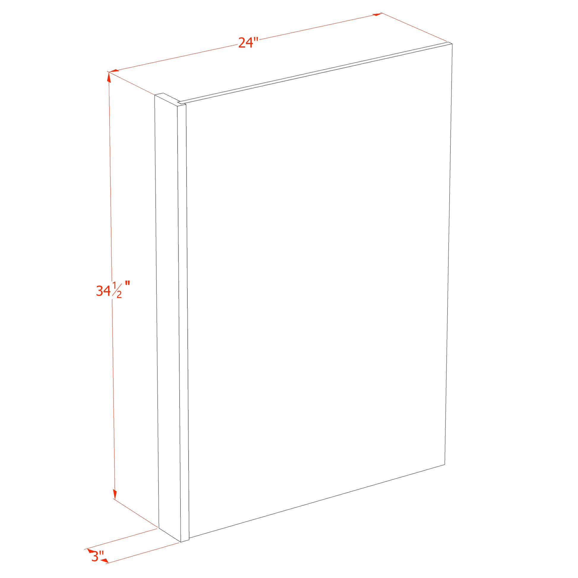 - Dimensions: 3" Filler - 24"W x 34-1/2"H x 1/2"D
