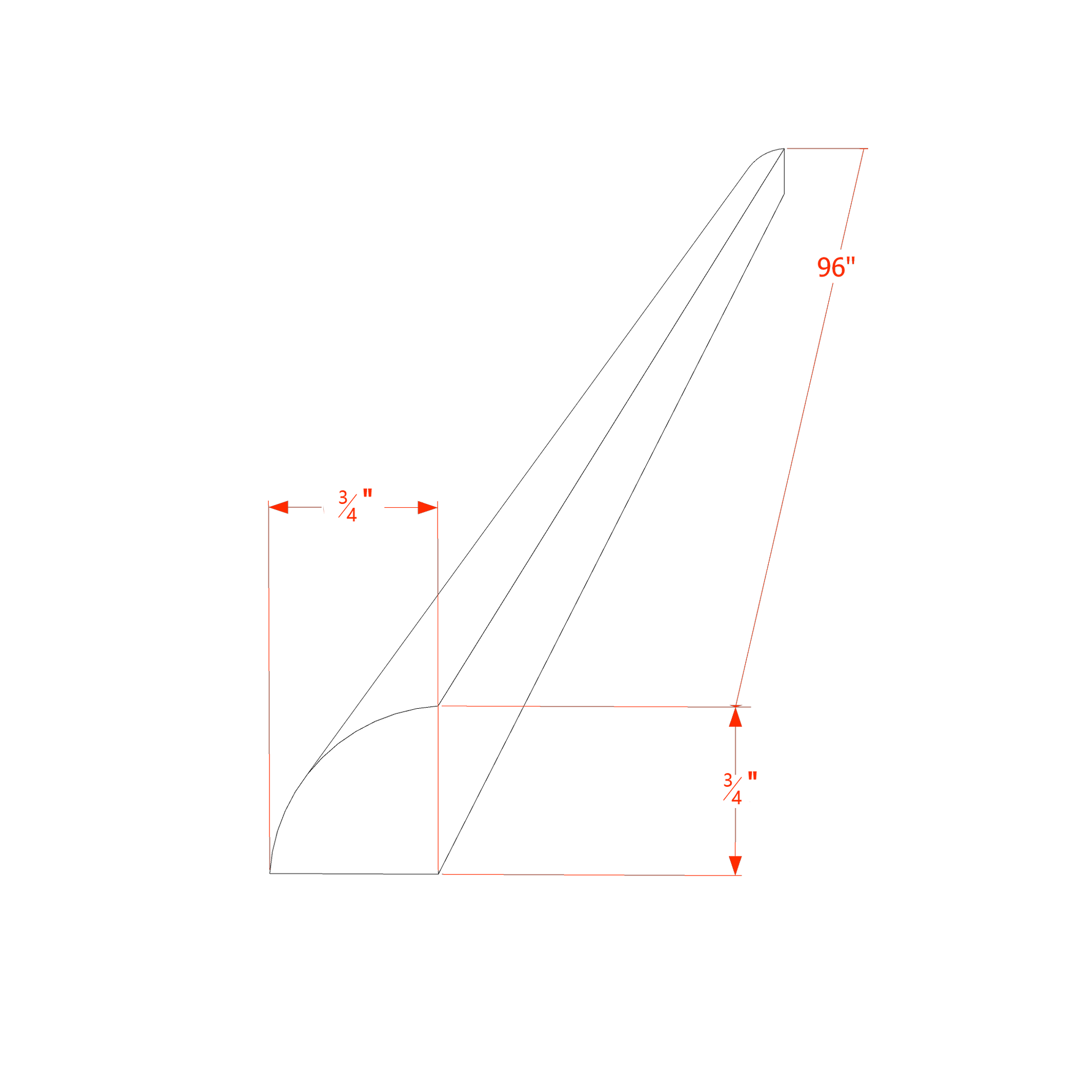 - Dimensions: 96"W x 3/4"H x 3/4"D