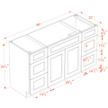TG-VSD60SINGLE: Soft Green Shaker 60"W x 34-1/2"H x 21"D 2 Doors, 6 Drawers & 1 False Drawer Single Sink Vanity Base Combo Cabinets