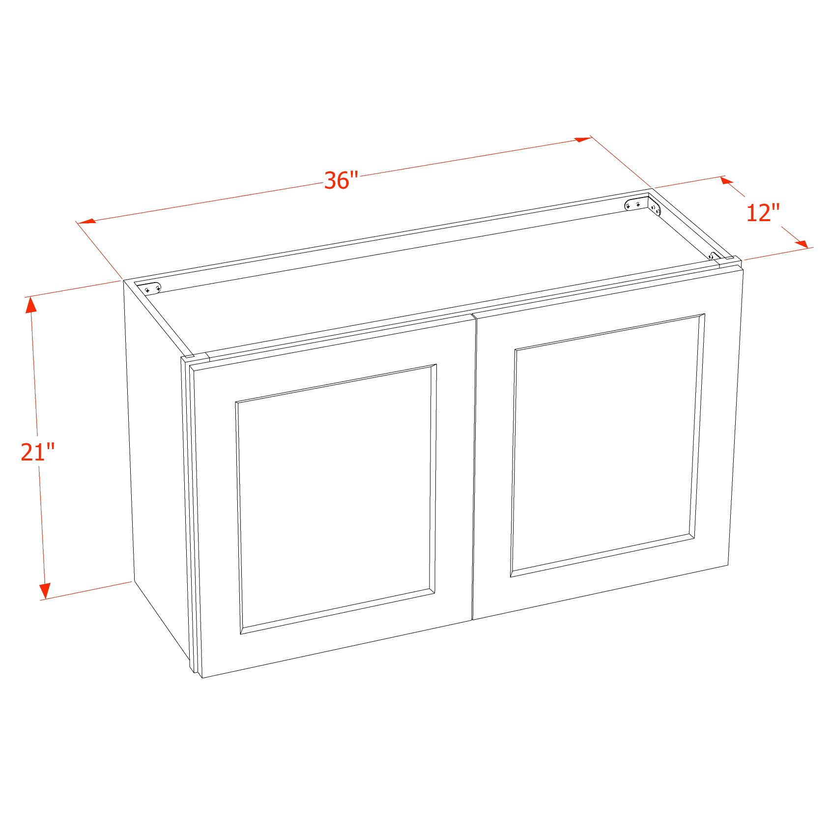 - Dimensions: 36"W x 21"H x 12"D