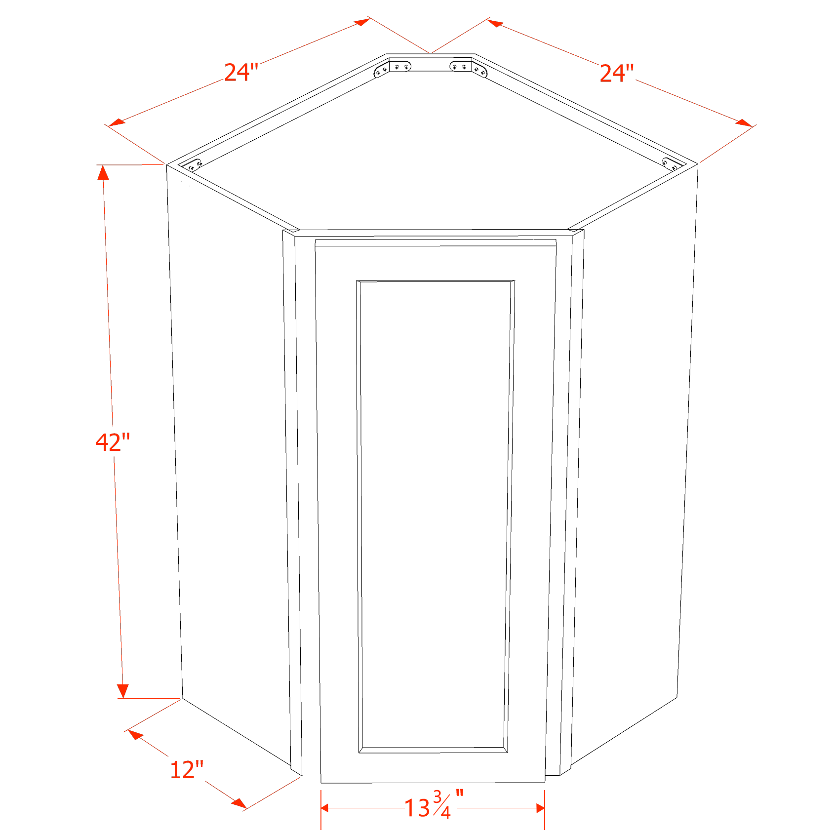 TG-WDC2442: Soft Green Shaker 24"W x 42"H 1 Door & 2 Shelves Diagonal Wall Corner Cabinet