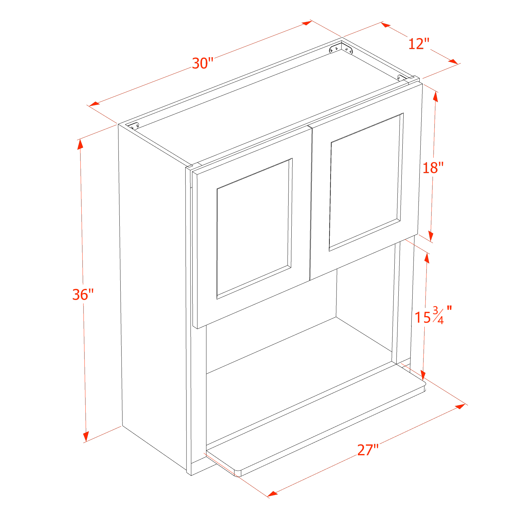 - Dimensions: 30"W x 36"H x 12"D
