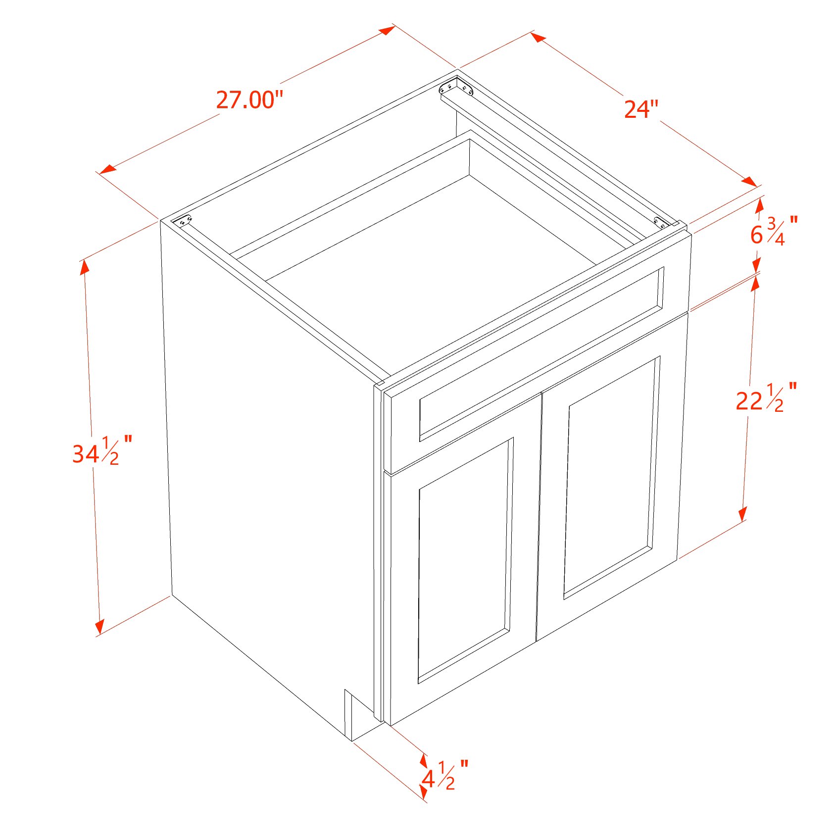 TW-B27: Creamy White Shaker 27" 1 Drawer 2 Doors Standard Base Cabinet