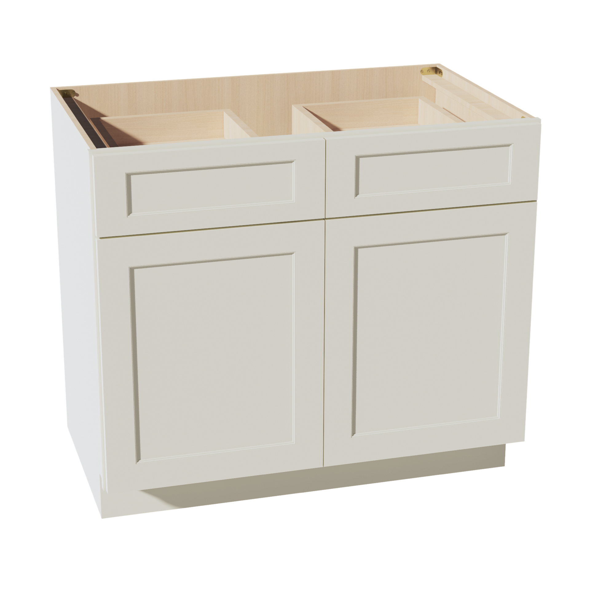 TW-B39: Creamy White Shaker 39" 2 Drawers 2 Doors Standard Base Cabinet