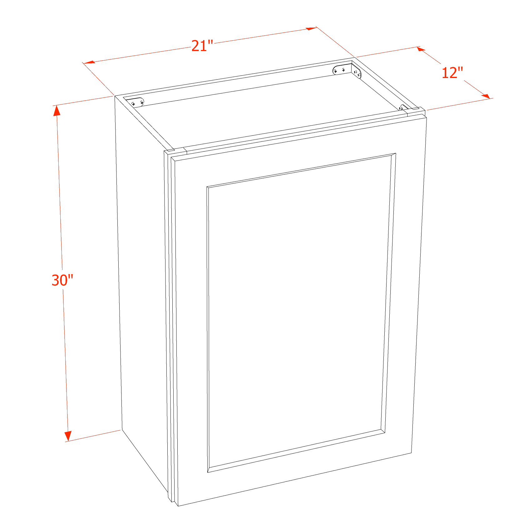 TW-W2130: Creamy White Shaker 21"W x 30"H 1 Door & 2 Shelves Standard Wall Cabinet