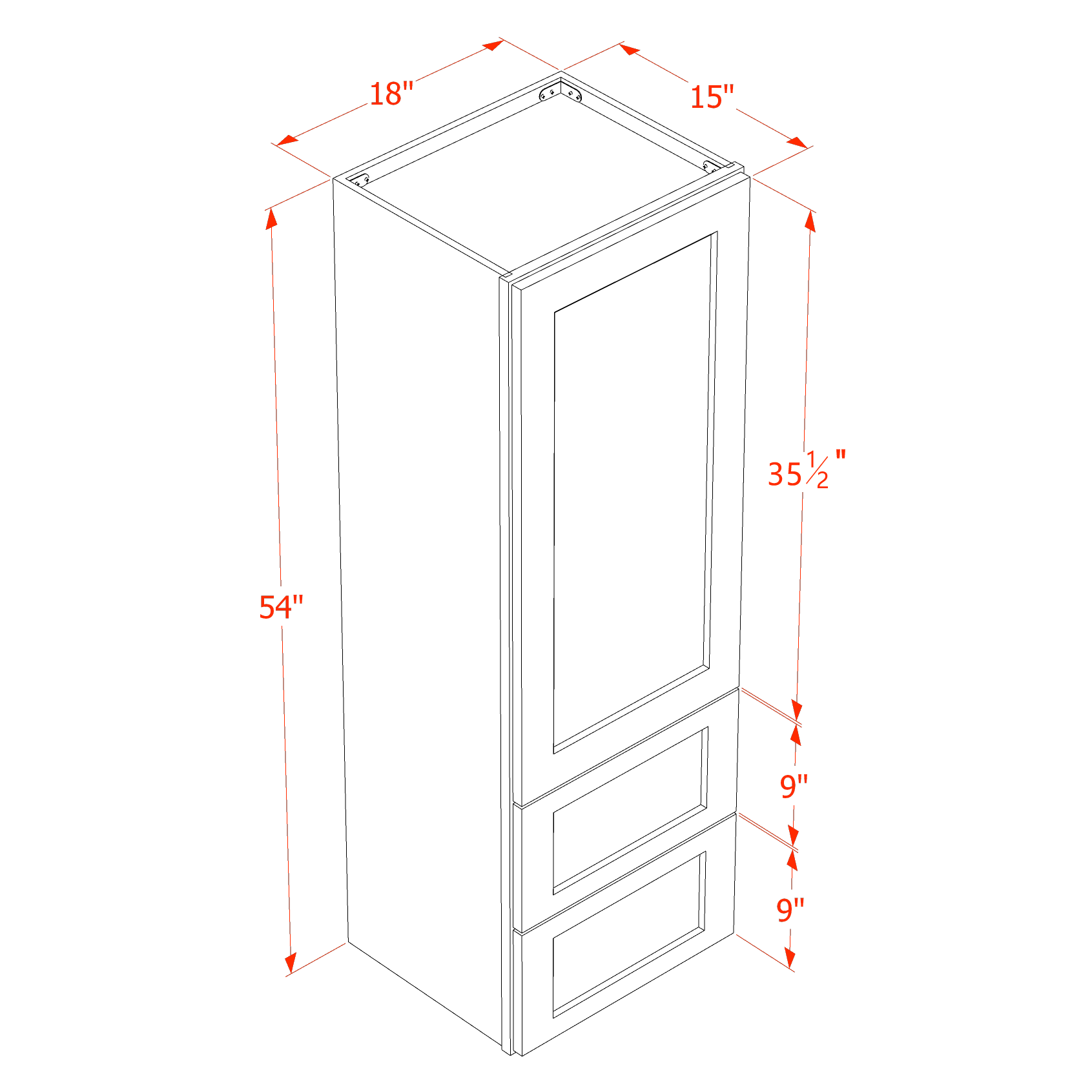 - Dimensions: 18"W x 54"H x 15"D