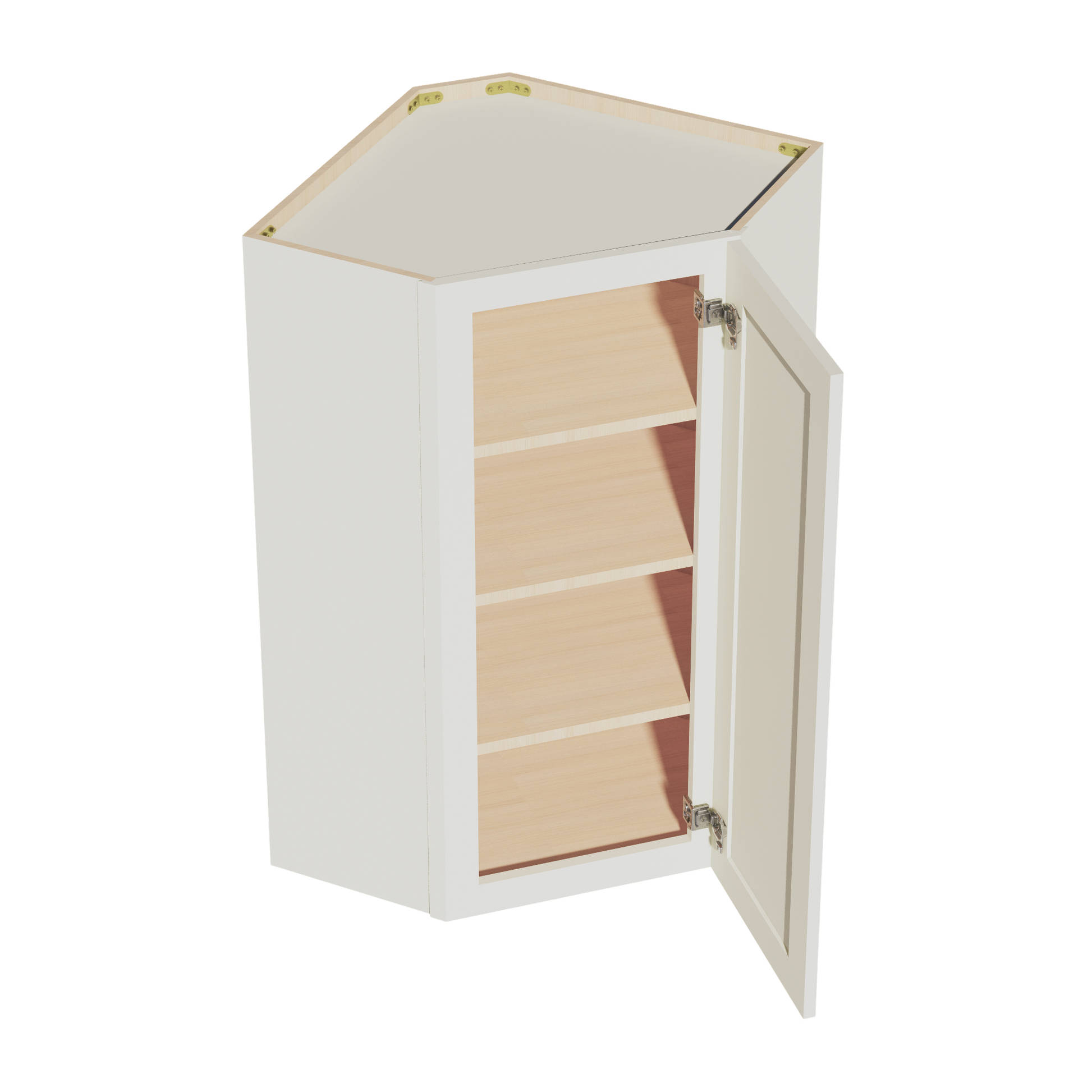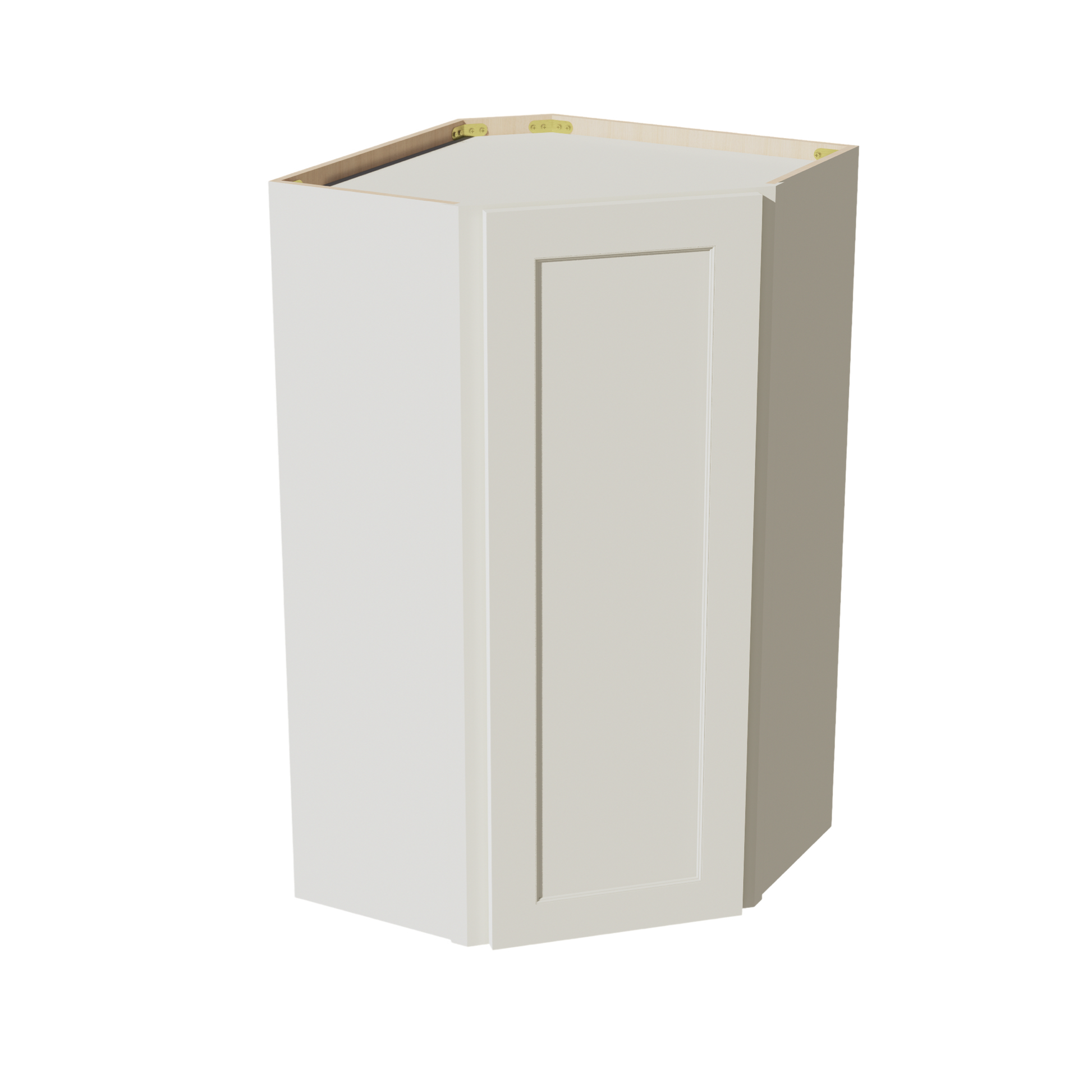 TW-WDC2442: Creamy White Shaker 24"W x 42"H 1 Door & 2 Shelves Diagonal Wall Corner Cabinet