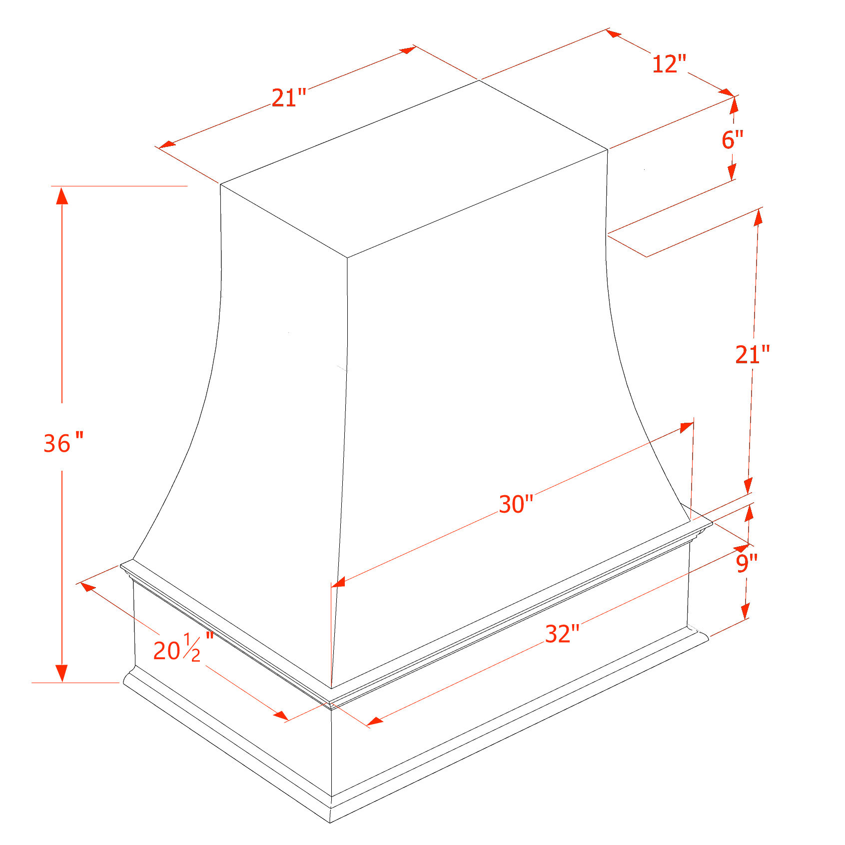 TW-WRH3036: Creamy White Shaker 30"W x 36"H Wood Wall Mounted Range Hoods