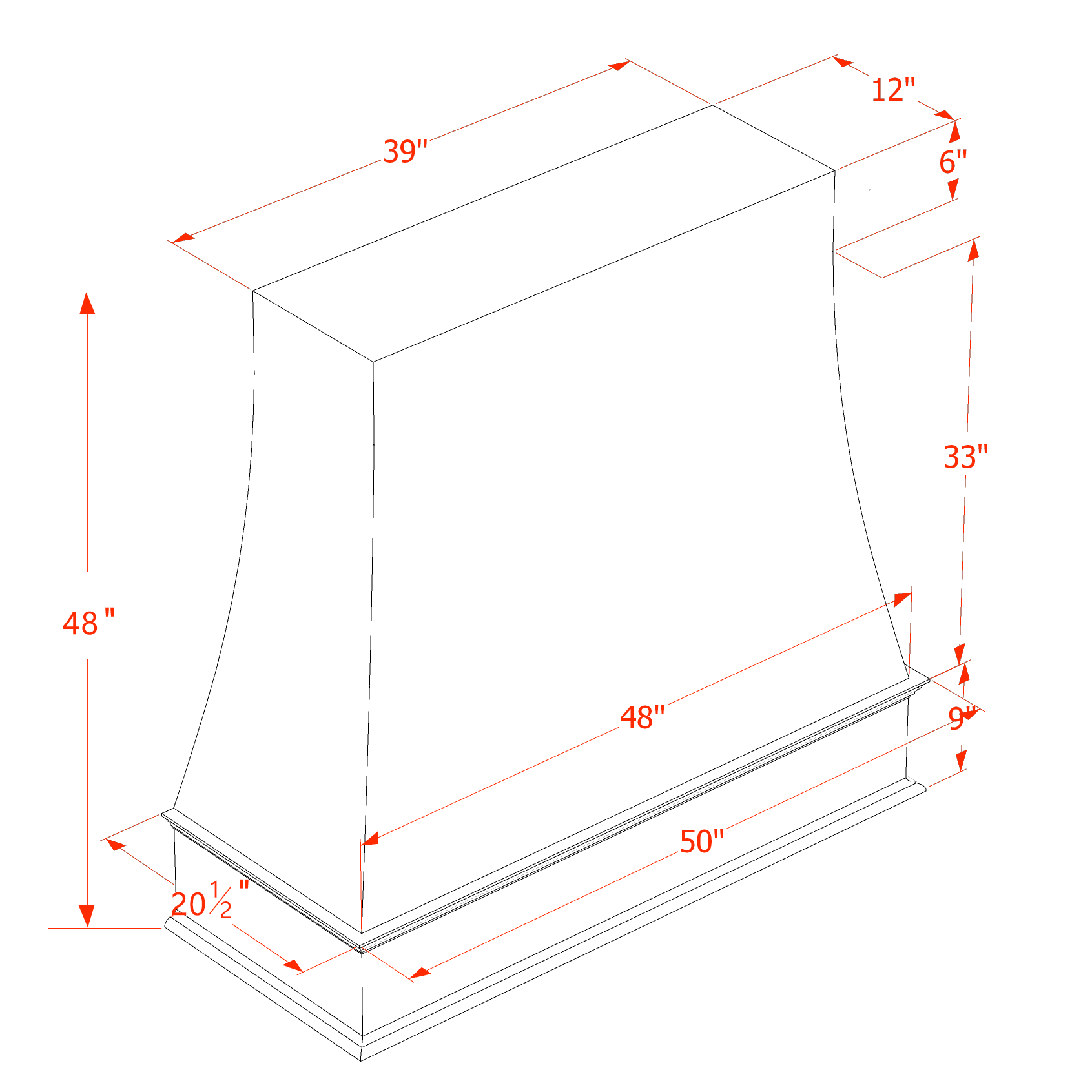 TW-WRH4848: Creamy White Shaker 48"W x 48"H Wood Wall Mounted Range Hoods