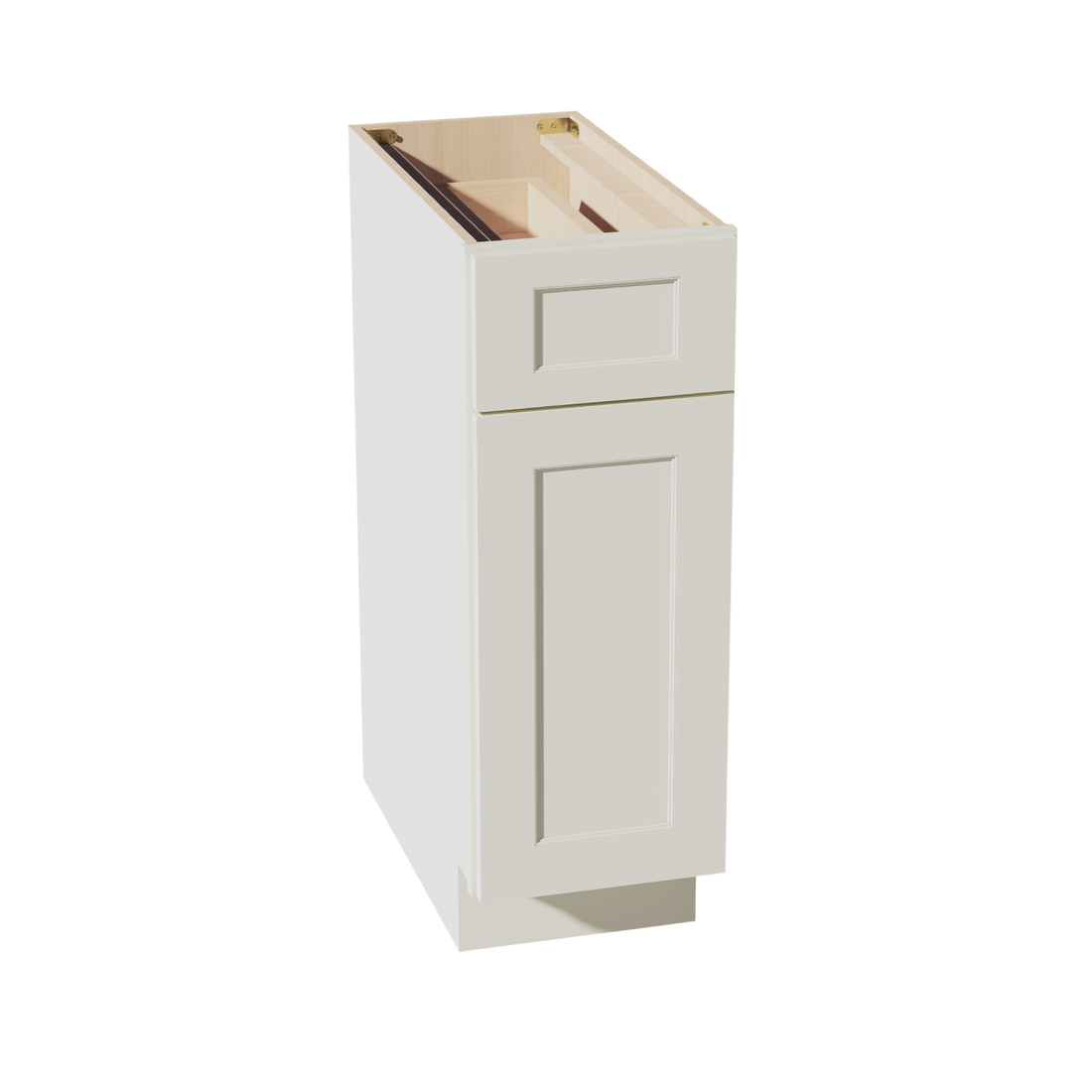 TW-BF09-PO: Creamy White Shaker 09" Full Door Pull Out Spice Rack Base Cabinets