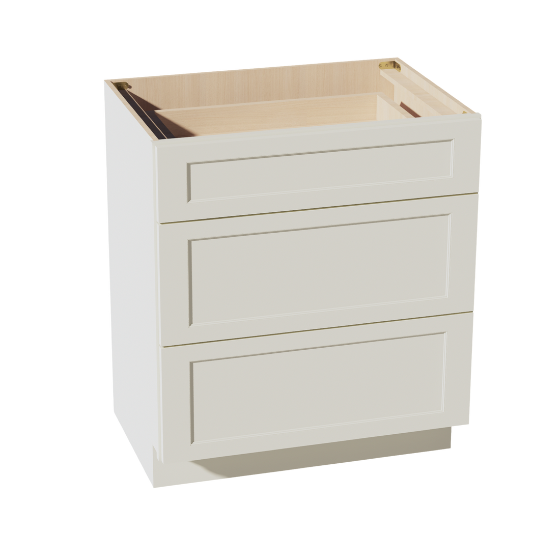 TW-VDB3021: Creamy White Shaker 30"W x 34-1/2"H x 21"D 3 Drawers Vanity Base Cabinets