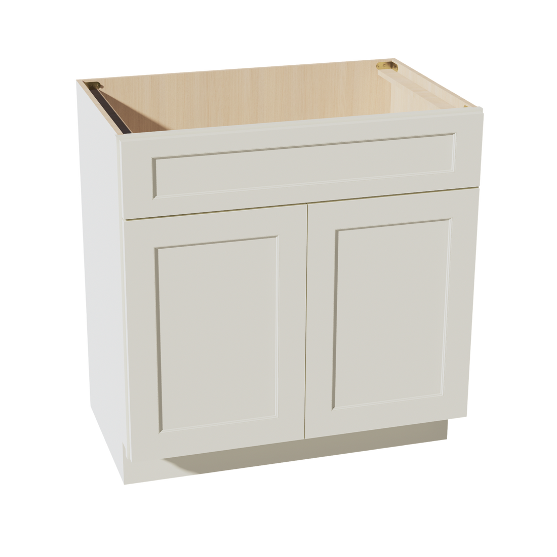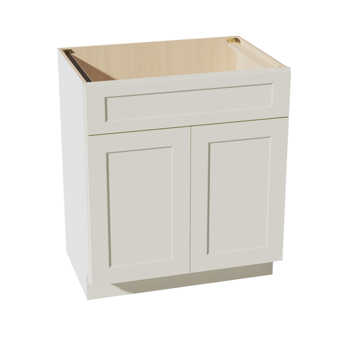 TW-VSB3021: Creamy White Shaker 30"W x 34-1/2"H x 21"D 2 Doors & 1 False Drawer Vanity Sink Base Cabinets