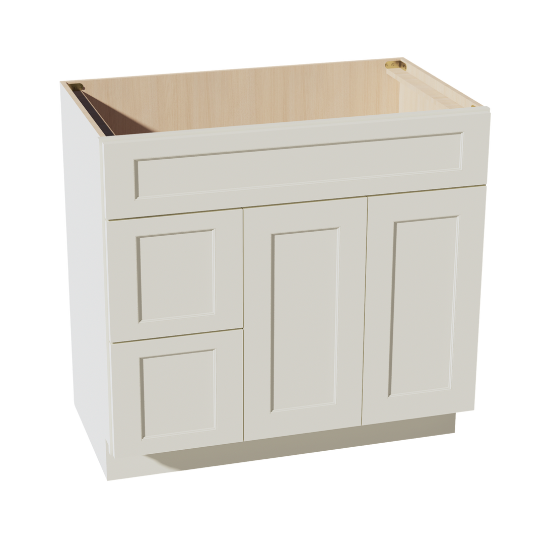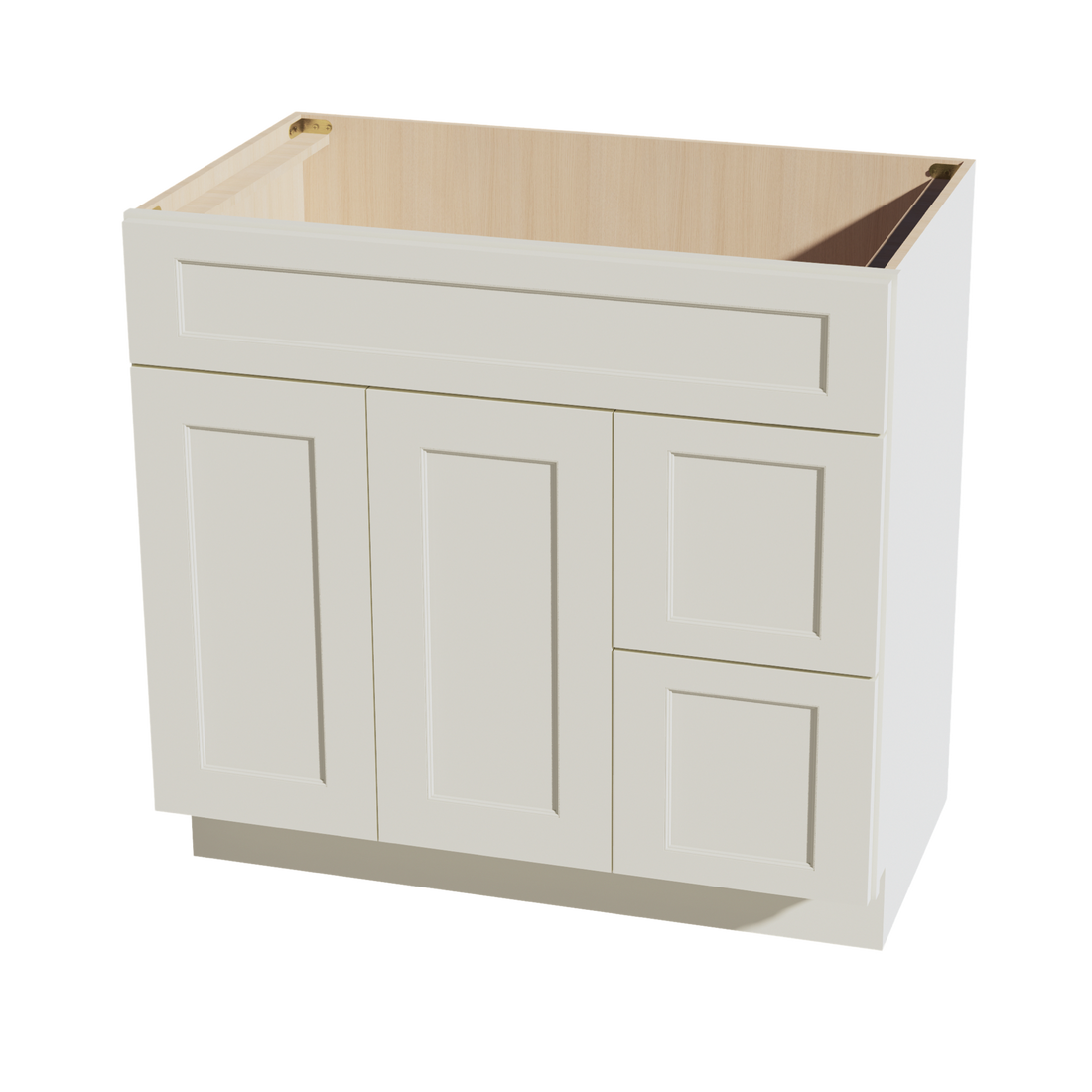 TW-VSD3621R: Creamy White Shaker 36"W x 34-1/2"H x 21"D 2 Doors & 2 Right Drawers Offset Vanity Sink Base Cabinets