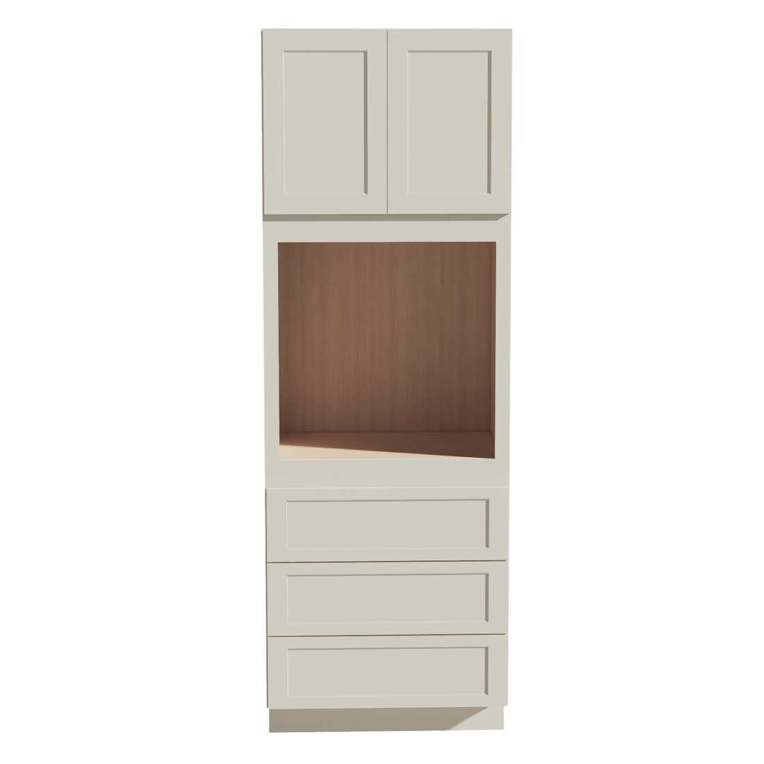 TW-OC3396: Creamy White Shaker 33"W x 96"H x 24"D 2 Doors & 3 Drawers Tall Oven Shelf Cabinets