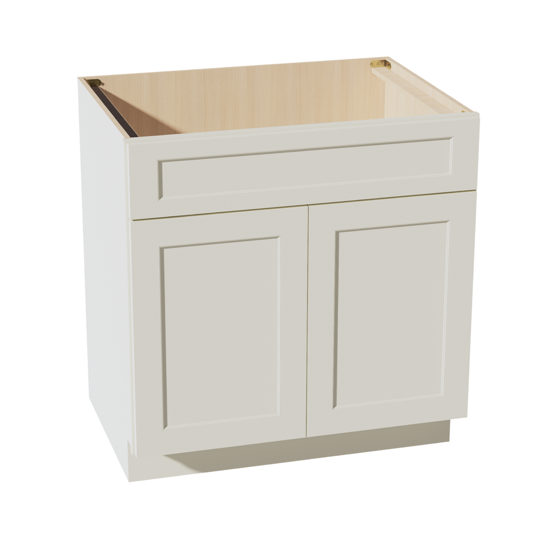 TW-SB30: Creamy White Shaker 30" 2 Doors 1 False Drawer Sink Base Cabinet