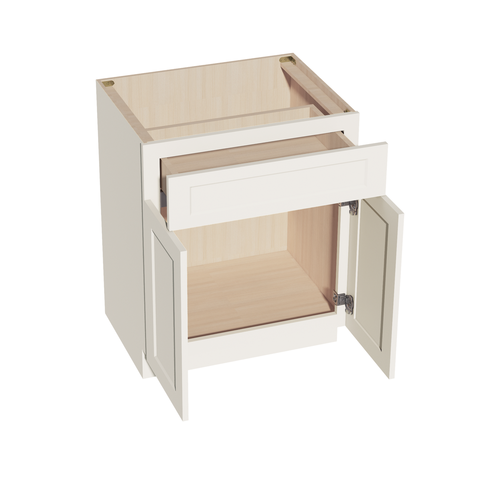 DI-VB2721:达拉斯象牙色 Shaker 27 英寸宽 x 34-1/2 英寸高 x 21 英寸深 2 门 1 抽屉双门梳妆台底柜