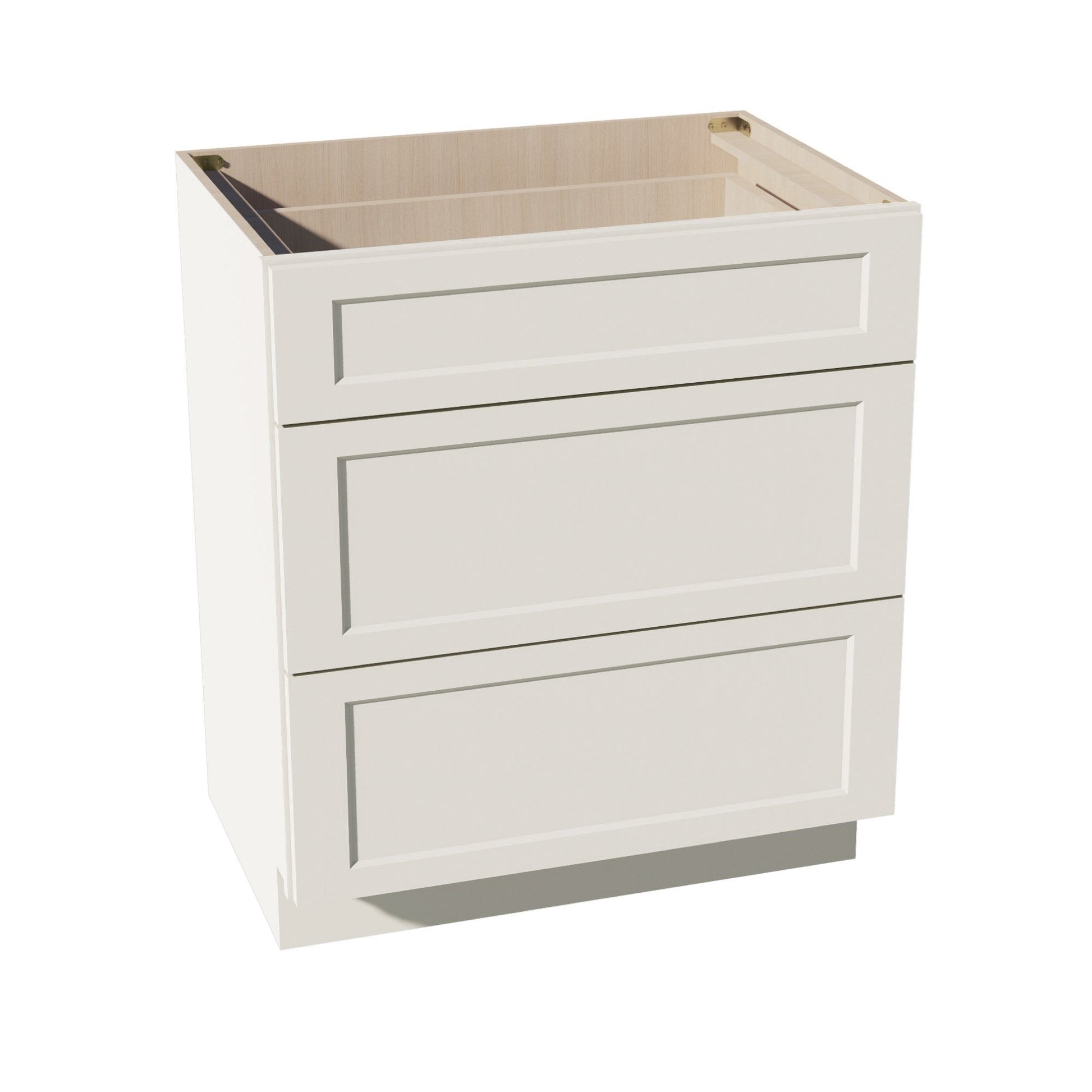 DI-VDB3021:达拉斯象牙色 Shaker 30 英寸宽 x 34-1/2 英寸高 x 21 英寸深 3 抽屉梳妆台底柜